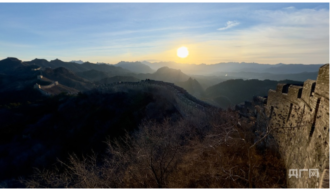 承德市金山岭长城被新年第一缕阳光唤醒,巨龙奔腾活跃在群山之巅(央广网发 周万平 摄)