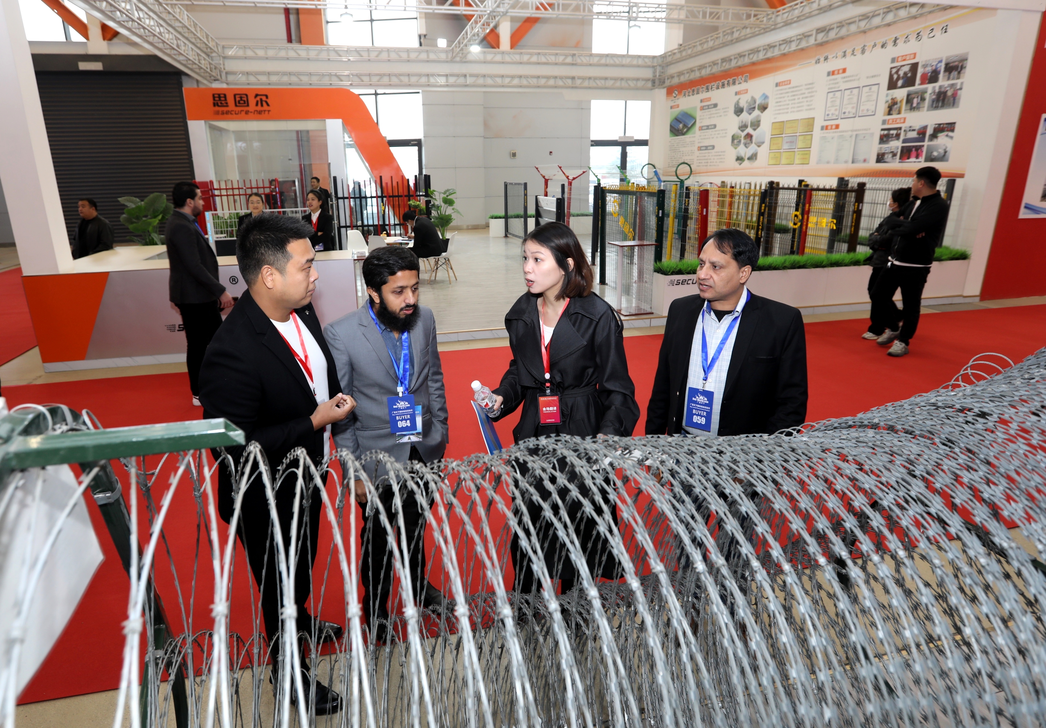 2024安平国际丝网博览会展厅,外商与参展商交谈。