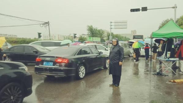 学校放假,衡水桃城中学党委书记赵红雁雨中疏导车辆