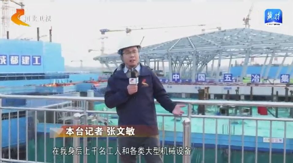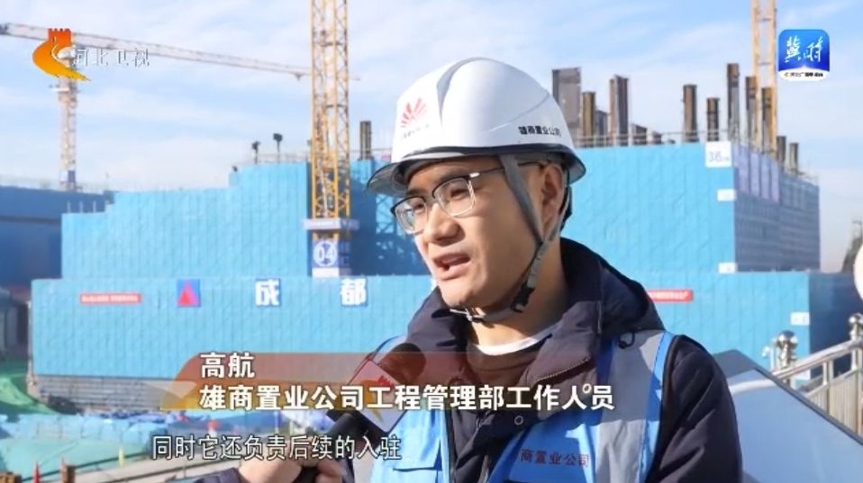 疏解企业加速落地,配套项目也在持续推进。这里是雄安国贸中心(城市航站楼)项目的建设现场,在我身后上千名工人和各类大型机械设备正在紧张有序忙碌中,项目建成后,这里将成为新区连通北京大兴机场通往世界的枢纽,未来之城的活力门户、城市名片。