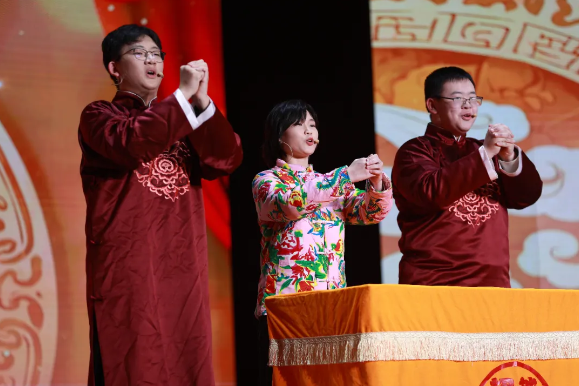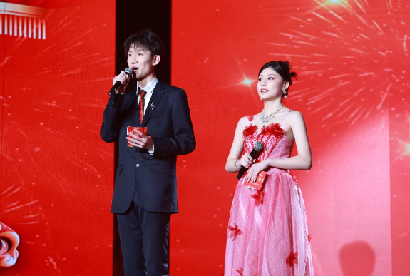 联欢会随着《相亲相爱》的旋律开场,老师与舞者们默契配合,用温暖的歌声、轻快灵动的脚步,瞬间点燃全场热情。合唱团深情演绎《光亮》,“莫听穿林打叶声,一蓑烟雨任平生”的激扬旋律激励着每一位二中人在新的一年里继续追寻属于自己的光亮。相声《我的未来式》包袱不断,以独特的魅力为传统相声注入活力,尽显对未来的憧憬,同时给联欢会增添了幽默色彩。