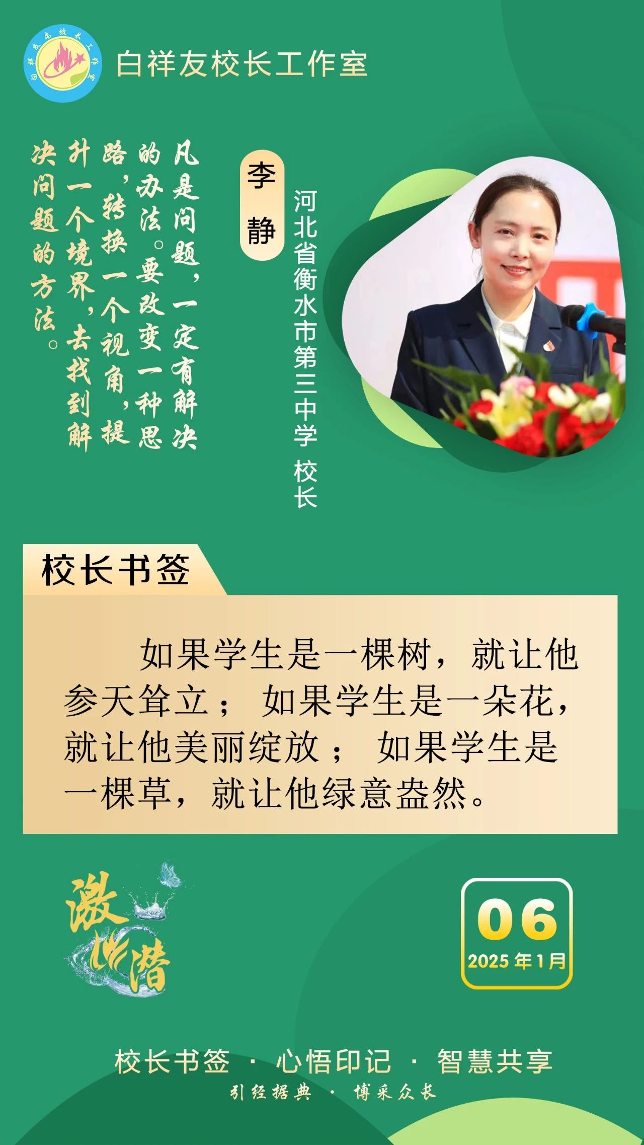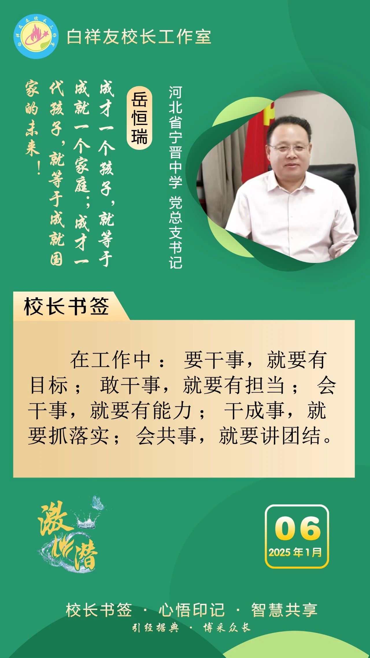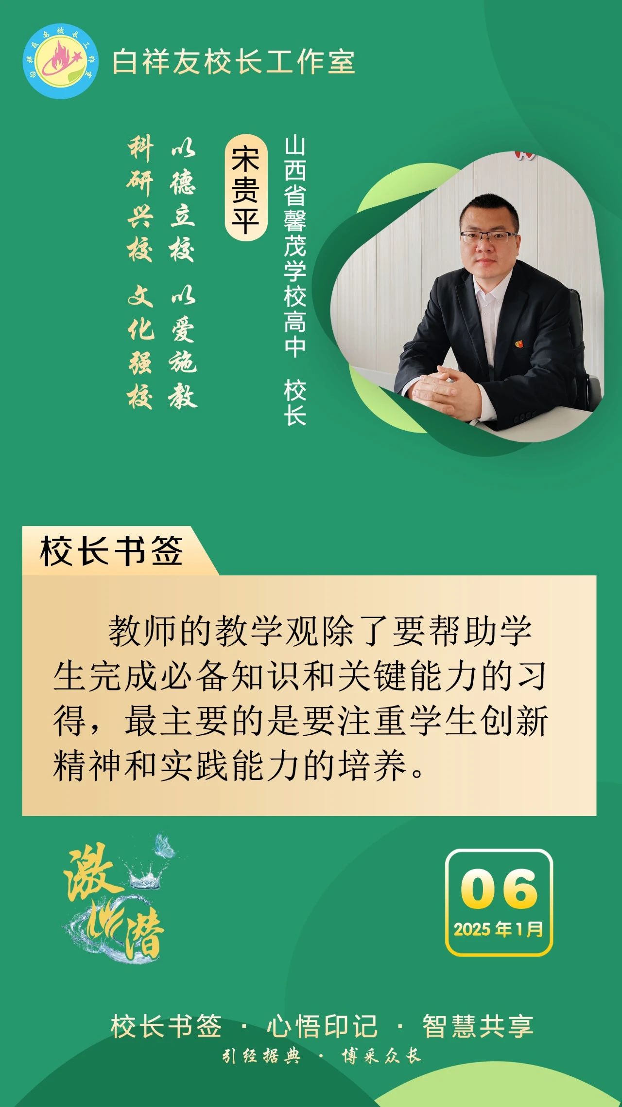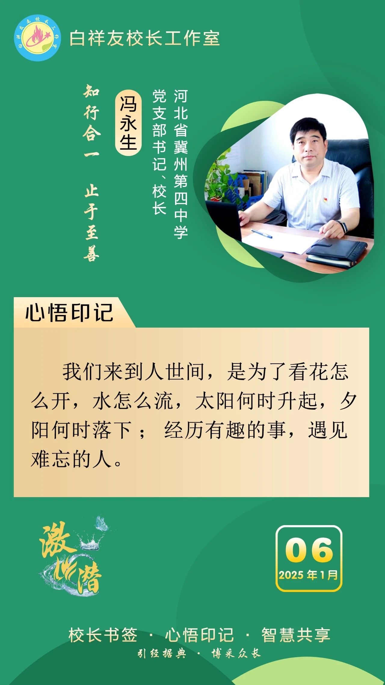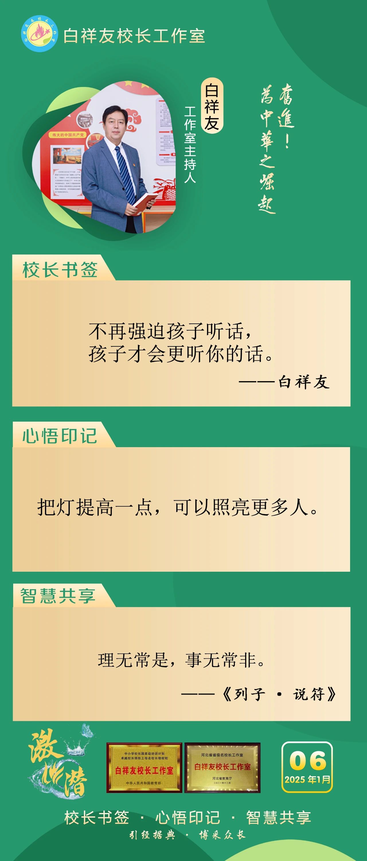 “白祥友校长工作室”成立于2019年4月,是教育部“国培计划”中小学名校长领航工程、河北省首批名校长工作室,目前省内外成员校48个。工作室坚持“资源共享、智慧共融、互助共赢”理念,已成为思想碰撞的交流场,资源共享的品牌站,成果展示的辐射源。