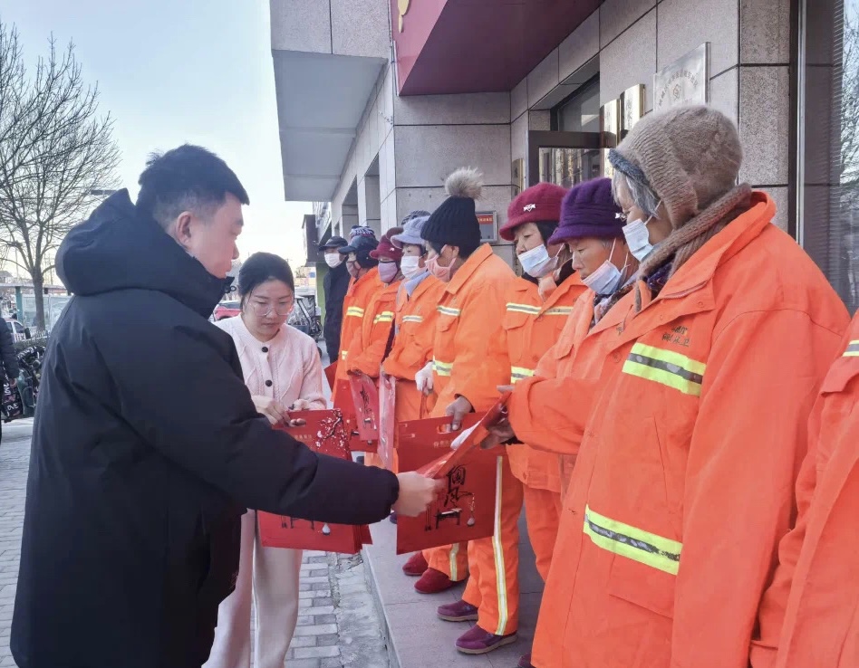 活动现场,城东社区党总支部书记耿晓汀为每一位环卫工人送上美好的祝福,并递上精心准备的春联礼包,礼包内大红的春联、喜庆的福字,传递着新春的气息。“大冷天的,这春联一拿,年味儿一下就有了,心里暖融融的!”环卫工王师傅笑着说。