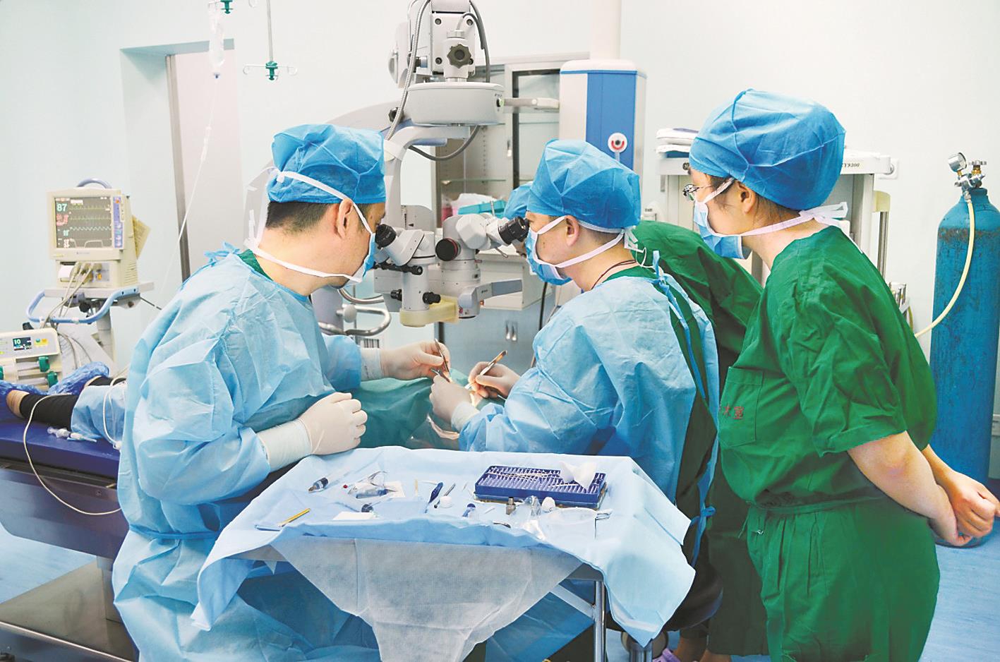 北京同仁医院眼科专家在张家口市第四医院为患者实施手术。河北日报资料片