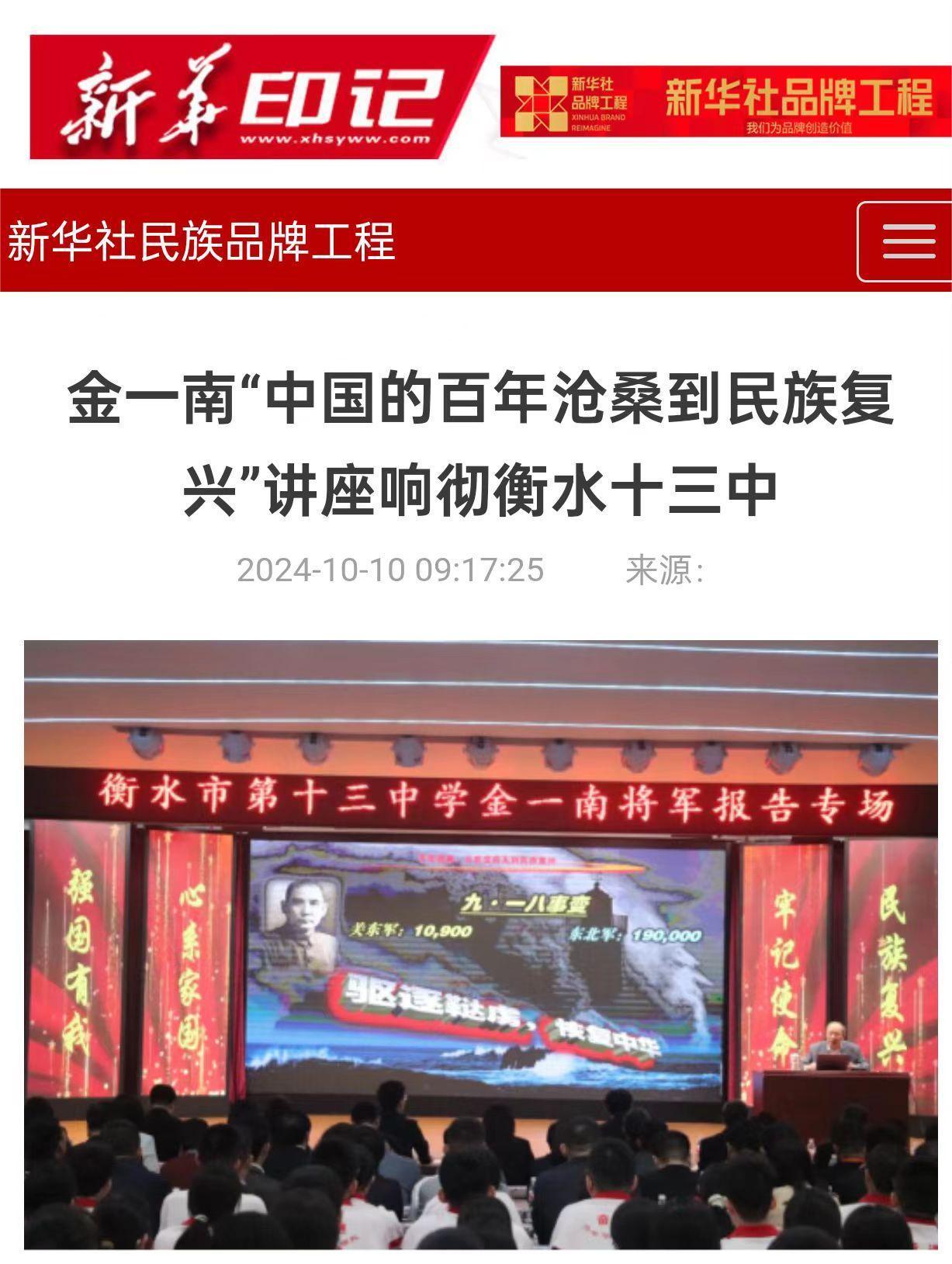 著名教育专家、北京宽高教育集团总校长王金战莅临衡水十三中作专题报告。《衡水日报》专版以《当衡水十三中遇见“讲者”陈州——一场“激爆潜能”的灵魂碰撞》为题报道了全国著名励志演说家陈州震撼心灵的励志报告。军事专家、国家安全战略问题专家,原国防大学教授金一南走进衡水十三中,参加国旗传递、升国旗活动,并作题为《中国的百年沧桑到民族复兴》的精彩讲座,《衡水日报》以《一场关于爱国主义教育的“问”与“答”》为题进行了整版报道。郑强教授走进衡水十三中作《中华复兴的教育与文化根基》专场报告,《衡水日报》进行了整版发布。蒙曼教授开展题为《中华民族的诗与歌》的专题讲座,吸引了社会各界人士和来宾及全校师生共同聆听。
