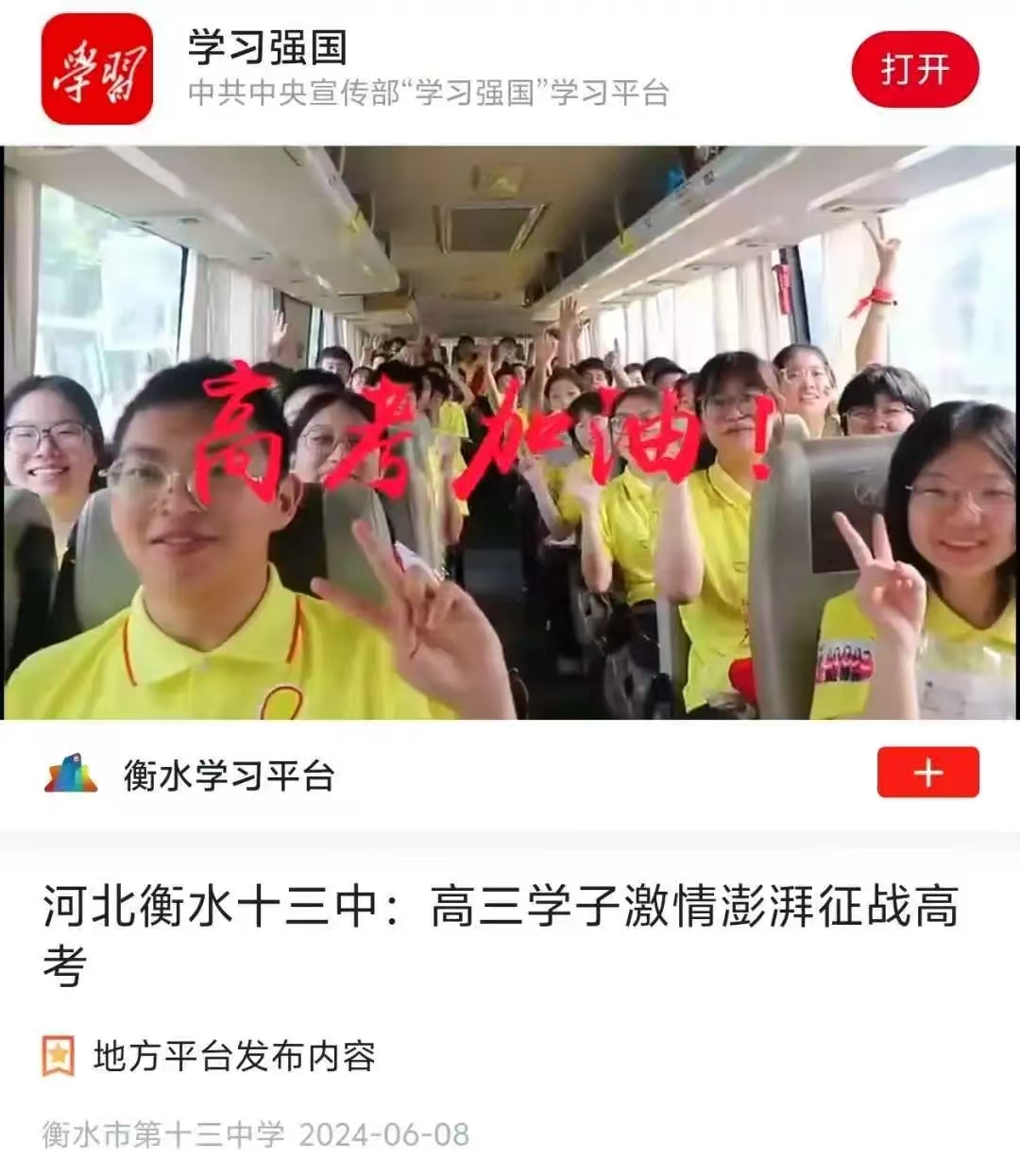 衡水十三中教育故事一周内两登微博热搜榜。高三老师连续12年入住学生宿舍彻夜守护,答疑解惑、舒缓高考压力。学习强国、河北新闻网等报道衡水十三中社团活动。人民日报客户端、今日头条等报道衡水十三中奋进新景象。中新社、中国教育报等报道该校高考保障工作。衡水日报社全媒体走基层采访团来到该校采风座谈。一年内,衡水十三中各项活动登上新华社客户端7次、学习强国19次。