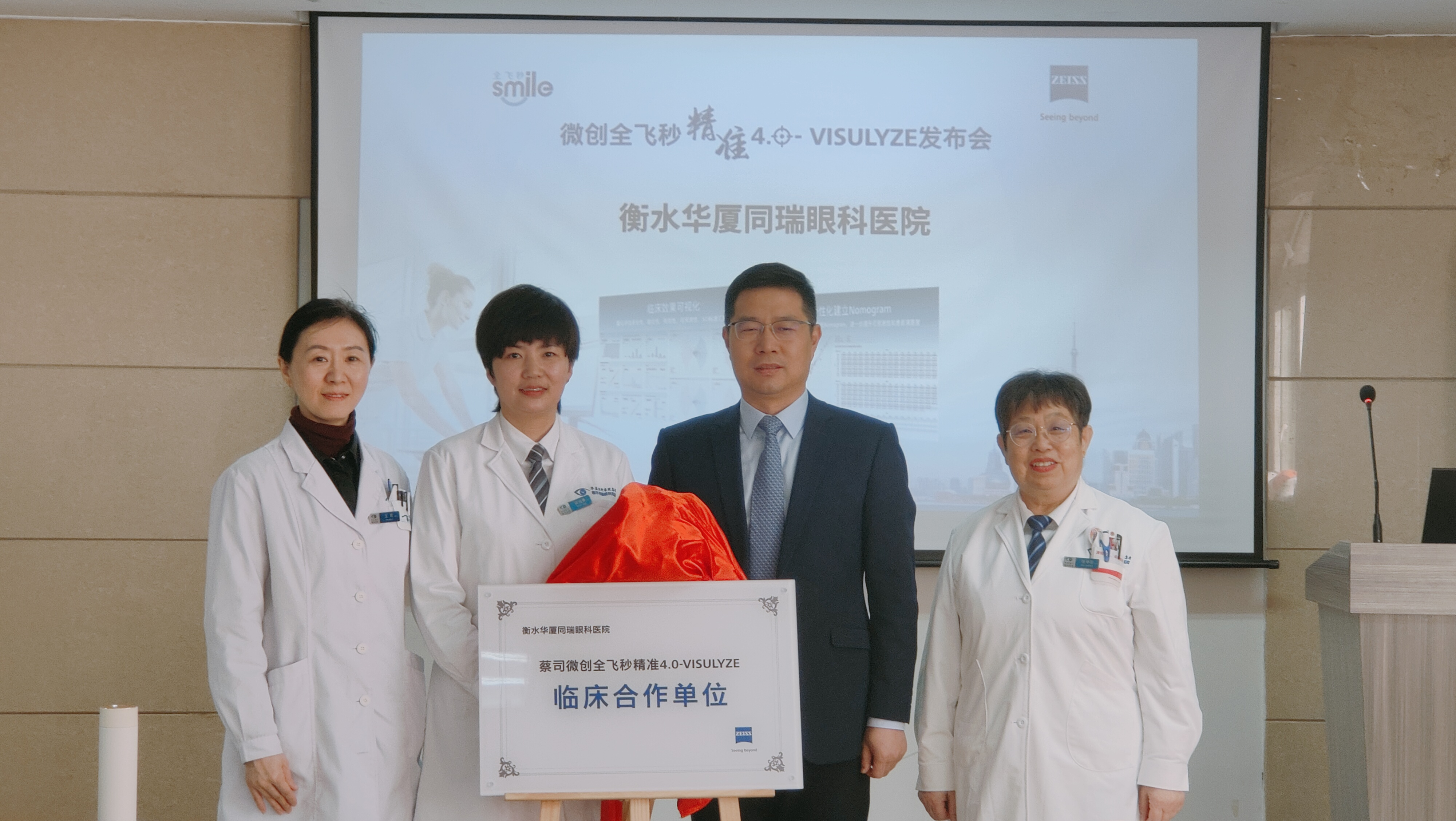 随后,卡尔蔡司管理有限公司的代表向衡水华厦同瑞眼科医院授予了“微创全飞秒精准4.0 - VISULYZE临床合作单位”的认证牌匾。这一授牌不仅是对衡水华厦同瑞眼科医院技术实力的充分认可,更是对双方未来深入合作的美好期许。这也意味着,衡水华厦同瑞眼科医院在屈光手术领域已经迈入了全新的发展阶段,将为广大近视患者提供更加个性化、可视化、精准化的矫正方案。