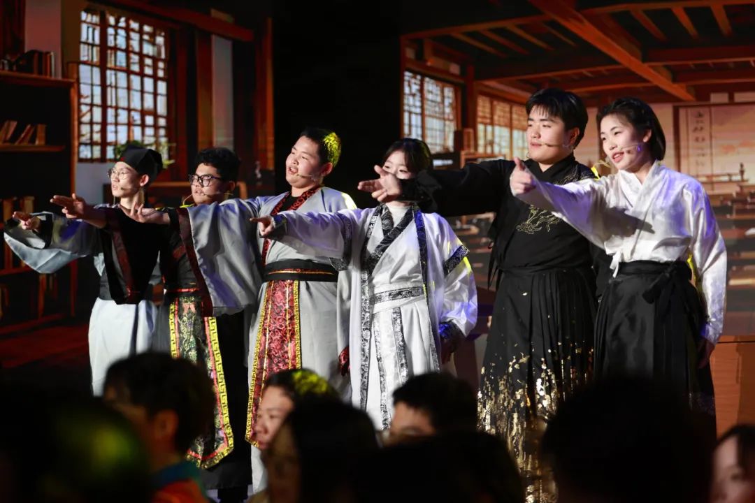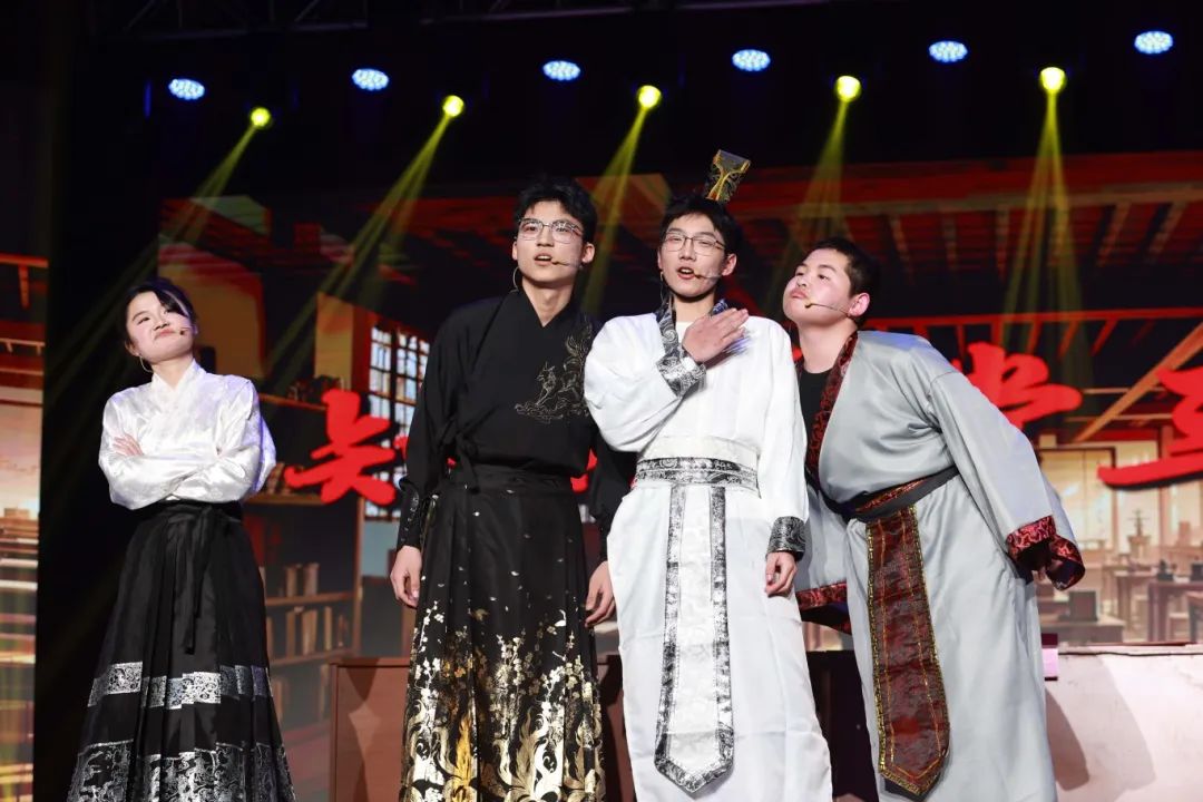 相声小品包袱不停,尽显学子风采。相声《我的未来式》用生动的语言和丰富的肢体表演,展示了同学们的日常生活,表达了同学们对未来人生的期待。小品《知盛学堂三两事》用诙谐幽默的语言和表演,表达了对校园霸凌说“不”的坚决态度。