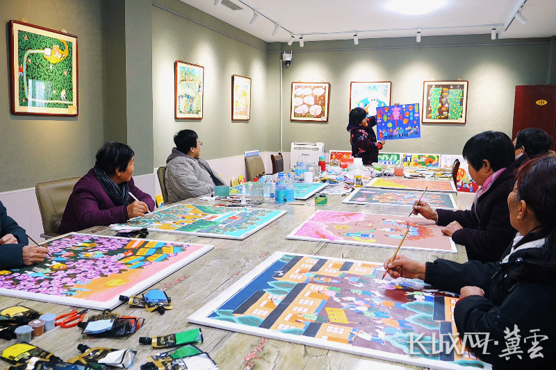 辛集市高度重视农民画的传承与发展,王下村更是被打造成为“农民画特色小镇”。村里建设了集写生、创作、交流、体验于一体的“王下农民画研创推广中心”,定期举办培训班、农民画比赛等活动,吸引了众多农民画爱好者参与。耿占雄等农民画传承人在此精心指导,全村已有400余人加入了农民画创作队伍。