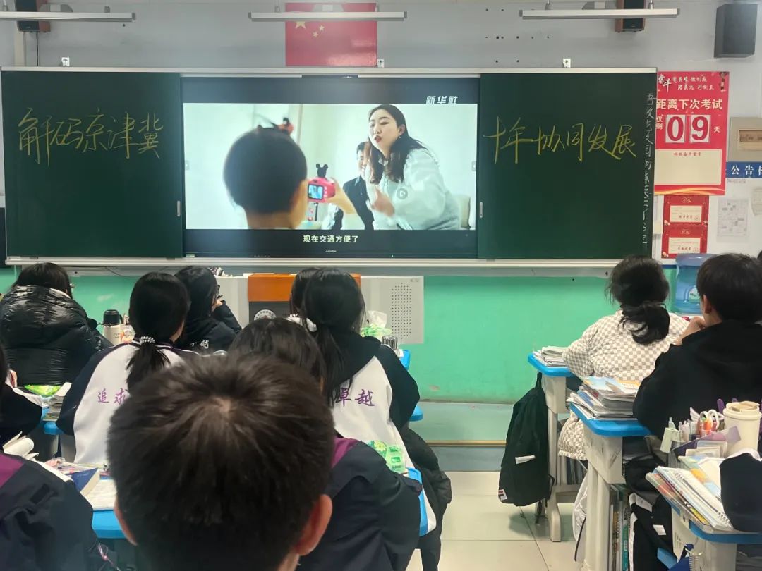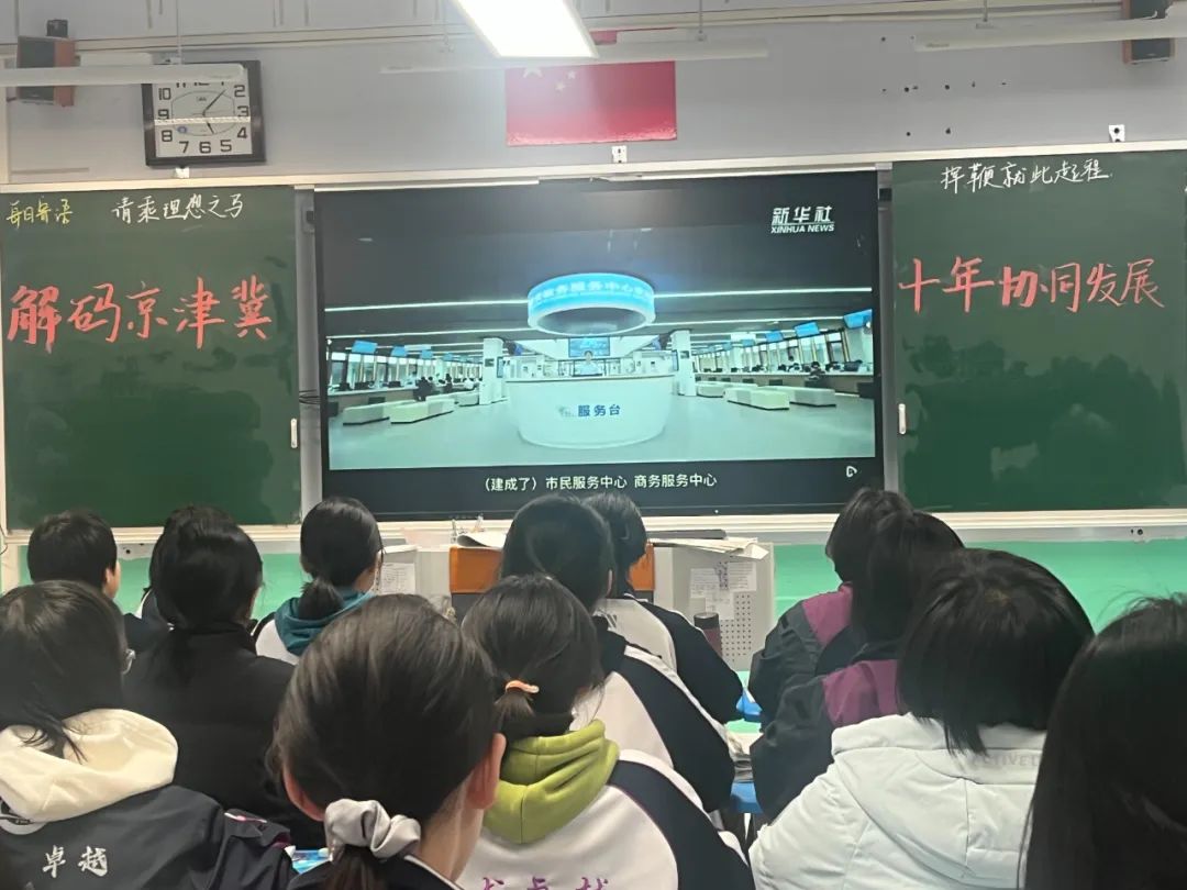 团课伊始,一段段珍贵的视频资料在教室里播放,瞬间吸引了同学们的注意力。视频中,京津冀协同发展历程,如一幅波澜壮阔的历史画卷徐徐展开。同学们目不转睛地盯着屏幕,时而惊叹于协同发展带来的巨大变化,时而沉思于这一战略背后的深刻内涵,深深被这一宏大战略所蕴含的智慧与力量所震撼。