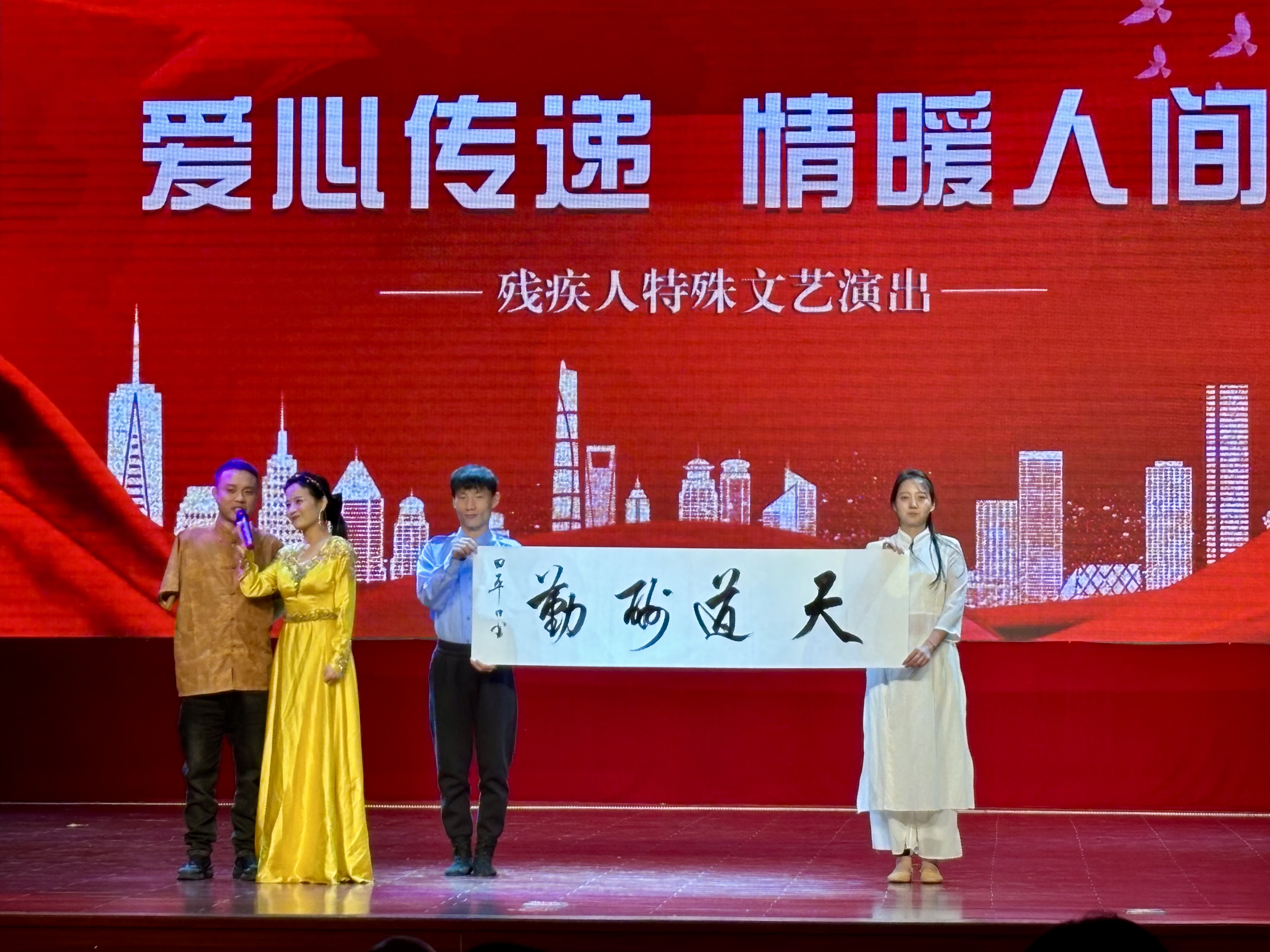 演出在开场舞蹈《花开时节感动中华》中拉开序幕,舞者们用激情四溢的舞姿传达了对祖国的热爱和祝福。随后,女声独唱《青春舞曲》《芦花》、男声独唱《在路上》《你是我的眼》《苹果香》、舞蹈《怒放的生命》《美丽中国》《雀之恋》《时代感》、杂技《晃圈》、萨克斯独奏《红歌串烧》《向天再借五百年》等表演精彩纷呈;残疾人书法爱好者田平挥毫泼墨,“天道酬勤”四个大字遒劲有力;川剧《变脸》精彩绝伦,台下互动点燃全场;舞蹈《千手观音》将现场气氛推向高潮,整场演出在《花开新时代》中圆满落幕。演员们的真情演绎和顽强拼搏的精神,赢得了现场观众的热烈掌声。