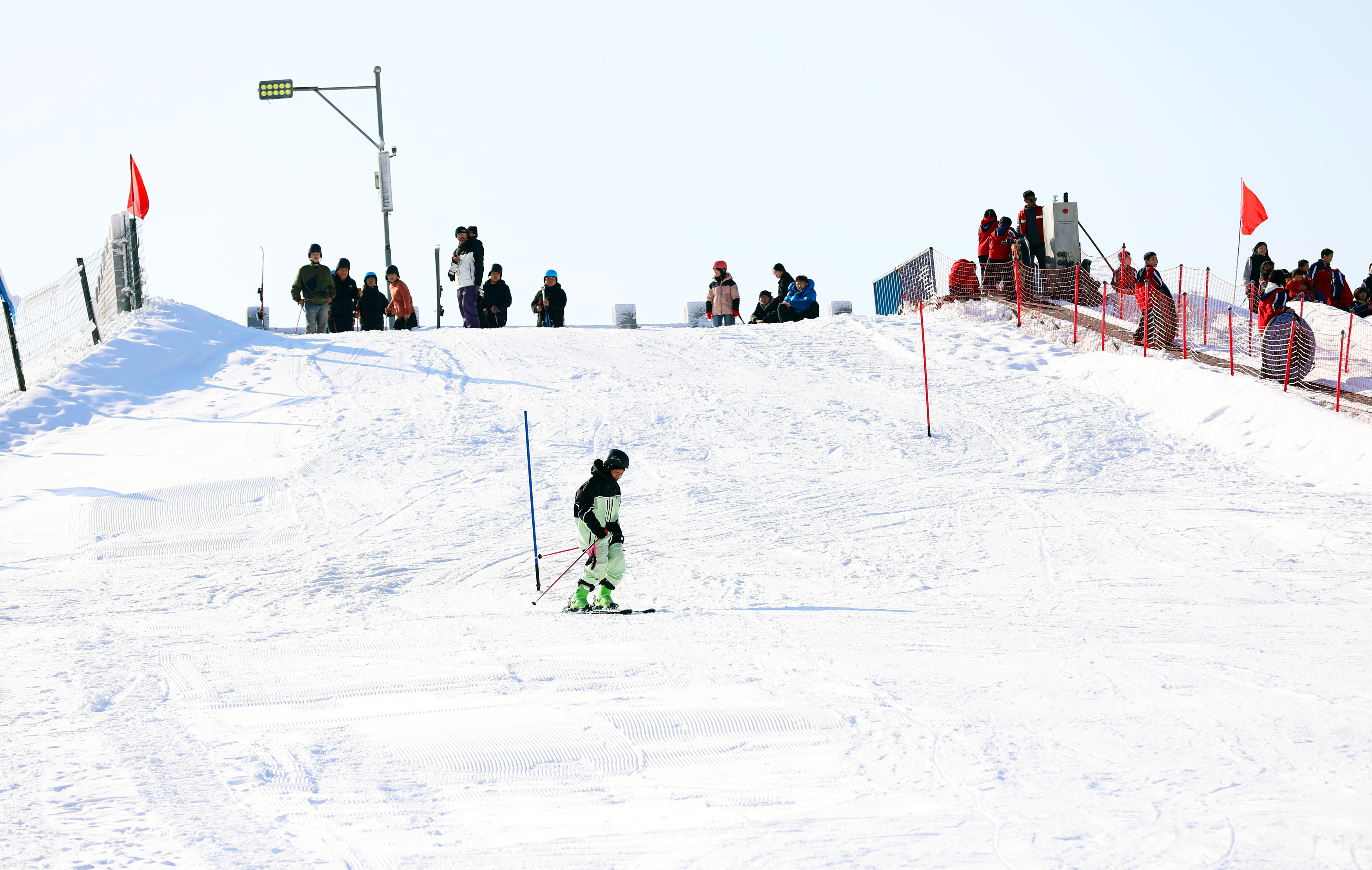开幕现场人头攒动、热闹非凡,活动在欢快的音乐声和观众的期待中拉开序幕。衡水市第二届“冰雪迎新春”嘉年华活动设置设置冬奥会比赛的竞技项目双板滑雪大回转以及雪地拔河、雪地排球2项娱乐性比拼赛事和滑雪体验项目,项目设置突出群众参与性和娱乐性,在展现冰雪运动特色的同时,也可以让群众体验冰雪运动的乐趣和魅力。