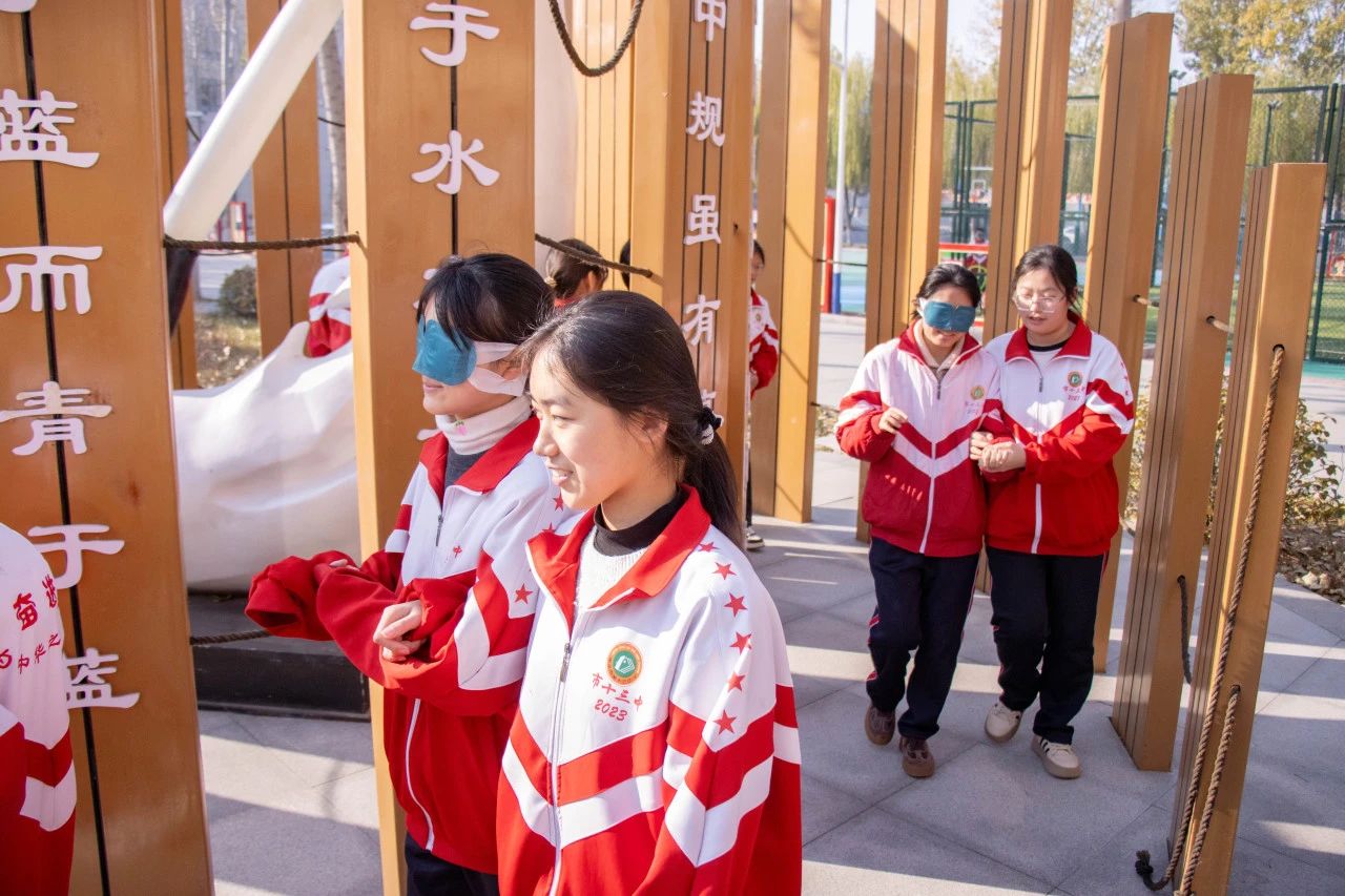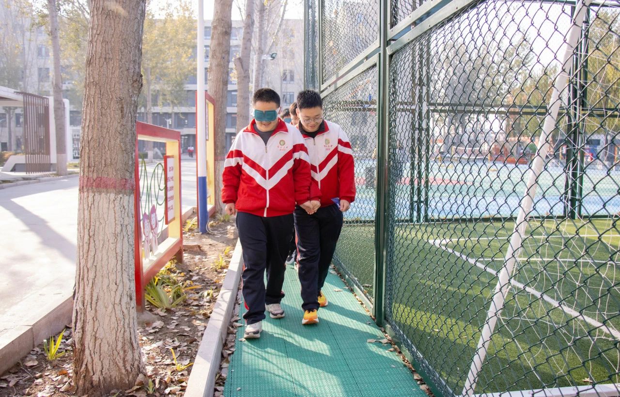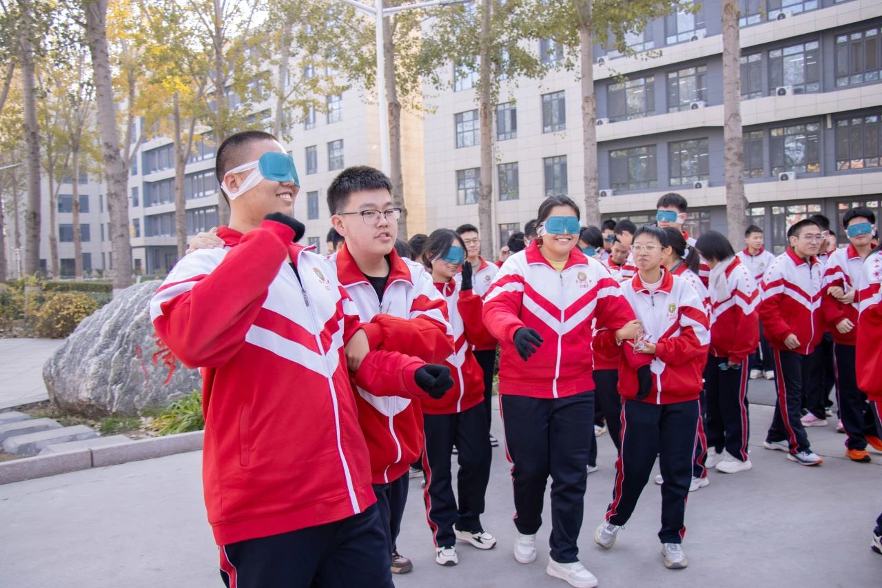 当视线模糊,眼前一片漆黑,同学们的心却慢慢靠得更近。为了在同学们之间建立起坚实的信任桥梁,促进更深层次的情感交流,近日,衡水十三中组织了“盲人”与“拐杖”心理小游戏,大家在失去视觉的世界里,感受信任的力量,学会换位思考、相互理解,增进友谊。