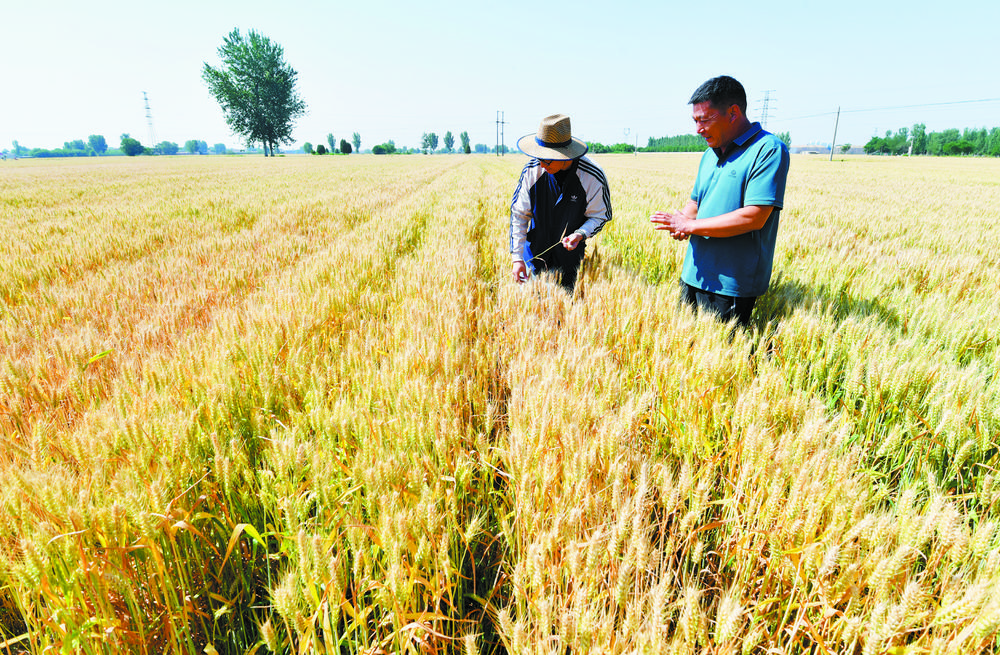 农技人员查看小麦成熟情况。(资料图片)