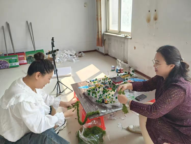 为全方位展现安平的独特魅力,三位老师融入五亿农民方向纪念馆、孙犁故居、台城党支部旧址、孝感圣姑庙、京安公司等特色地标建筑模型,生动彰显家乡的历史底蕴与发展轨迹。同时,用树脂粘土塑造出南王庄黄金姜块、大何庄桃果瓜类、马店镇白山药等特色物产,挑选彩泥精准还原色泽,以刺绣工艺嵌入“世界丝网看中国,中国丝网看安平”的佳话,还制作锄头、镰刀等农具模型,生动呈现农业生产场景 。