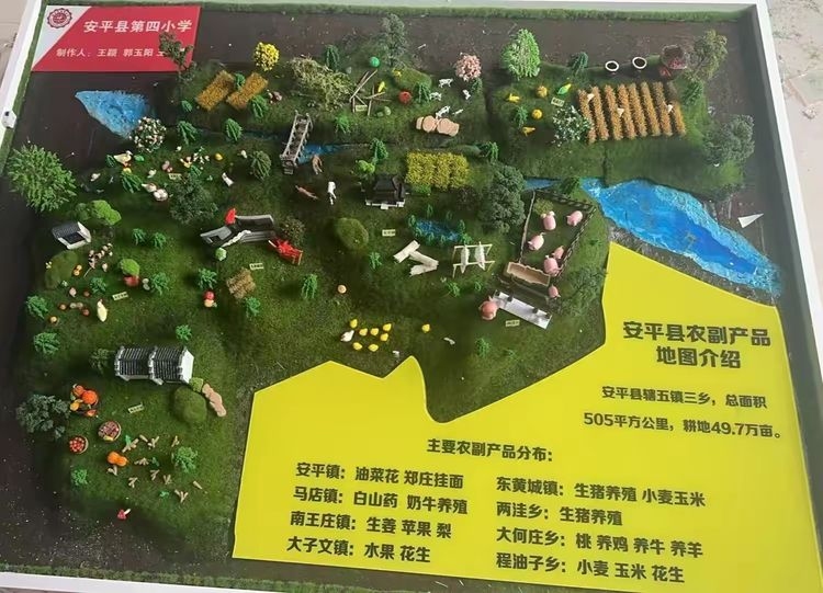 为进一步增加学生对家乡的了解,激发对家乡的热爱之情,安平县第四小学党支部书记、校长王颖,以及王立倩、郭玉阳老师,充分发挥主观能动性,把安平农副产品以及标志性建筑放进沙盘里,成为学生了解家乡、提升综合素养的生动教材,也为校园文化建设增添新亮点。