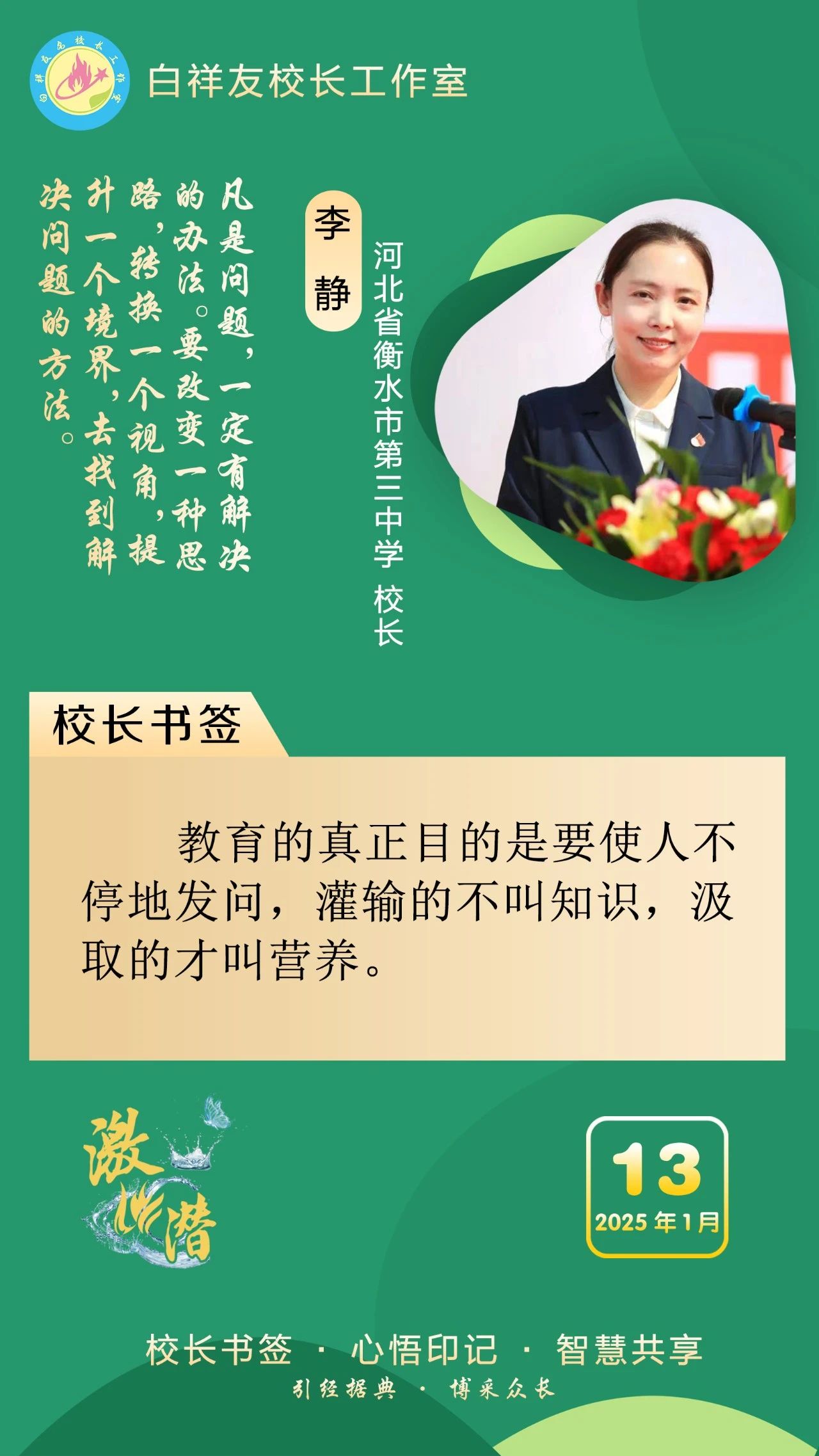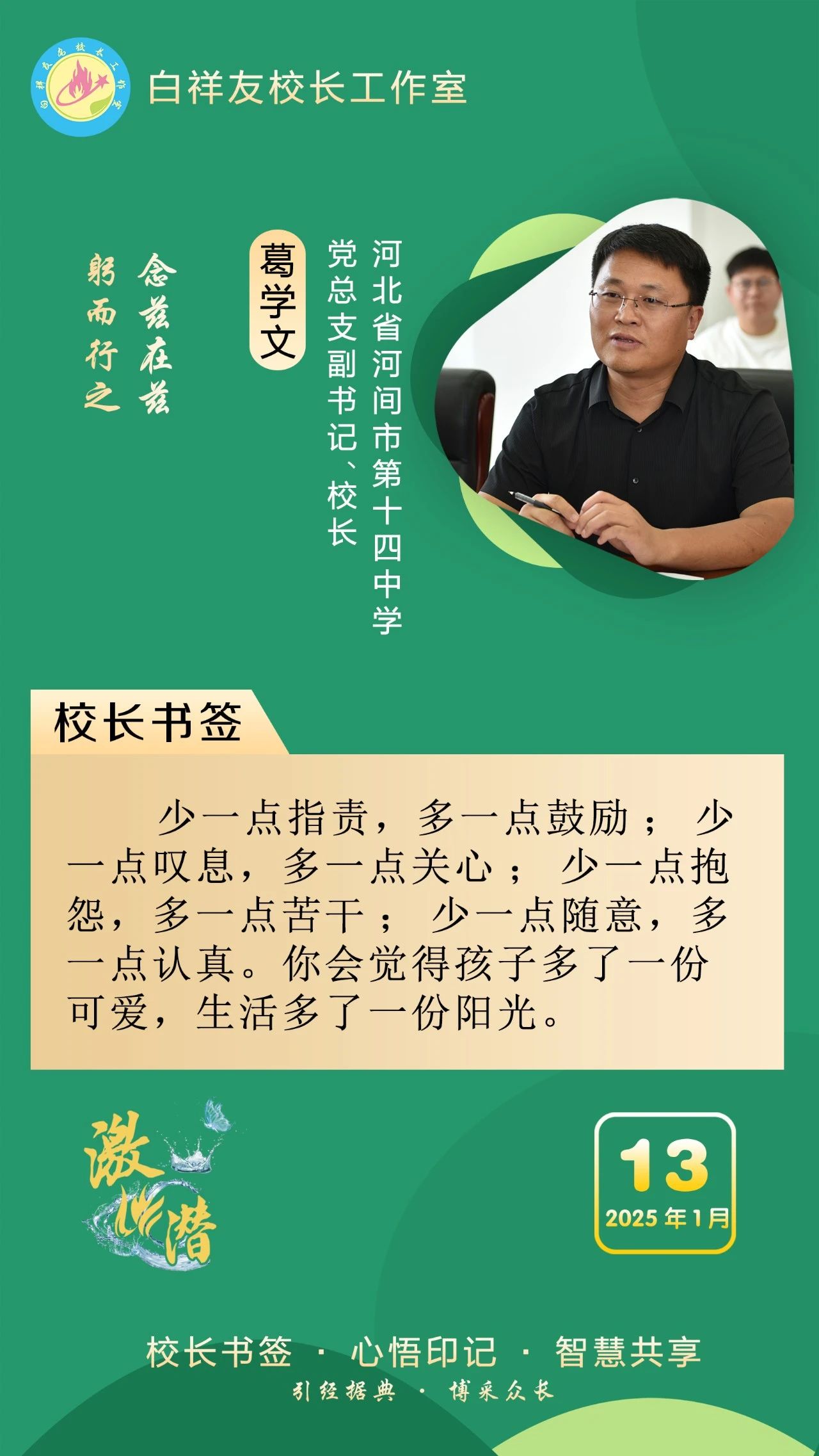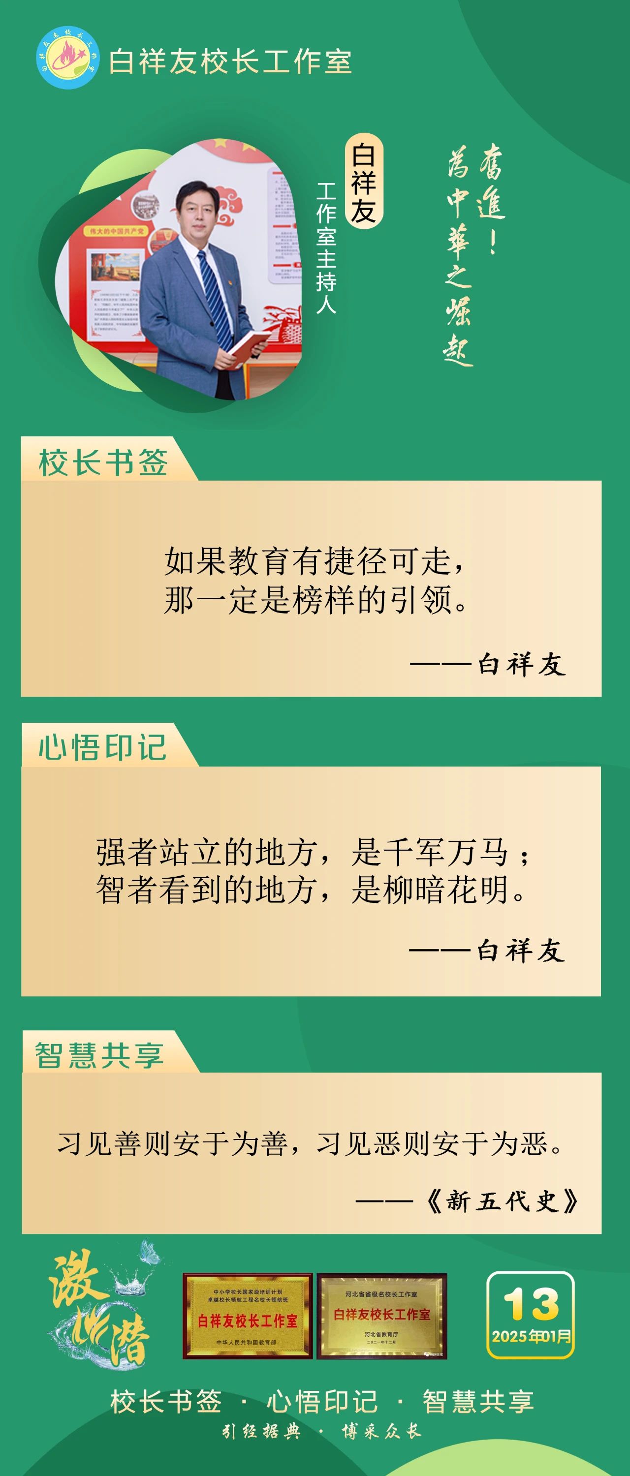 “白祥友校长工作室”成立于2019年4月,是教育部“国培计划”中小学名校长领航工程、河北省首批名校长工作室,目前省内外成员校48个。工作室坚持“资源共享、智慧共融、互助共赢”理念,已成为思想碰撞的交流场,资源共享的品牌站,成果展示的辐射源。