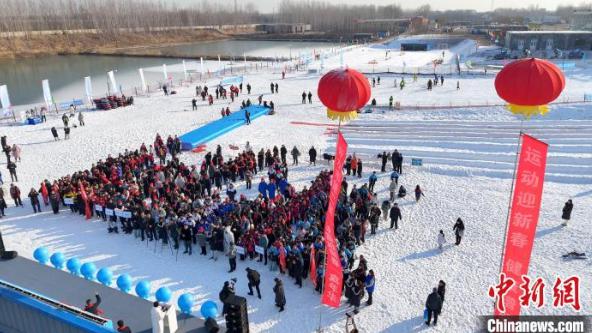 1月12日,以“运动迎新春 健康谱新篇”为主题的2025年全国全民健身大拜年暨衡水市第二届“冰雪迎新春”嘉年华活动在河北省衡水市武邑县薛庄滑雪场开幕。活动设置了竞技项目双板滑雪大回转,以及雪地拔河、雪地排球两项娱乐性比拼赛事。近年来,衡水市在当地广泛开展群众性冰雪运动,带动6万人参与冰雪运动,培养冰雪社会体育指导员1600余人。图为2025年全国全民健身大拜年暨衡水市第二届“冰雪迎新春”嘉年华活动现场。(无人机照片) 滕文茂 摄