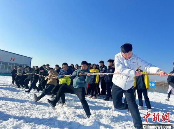 图为雪地拔河比赛现场。 刘艳飞 摄