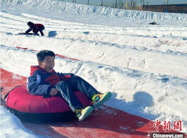 图为孩子们在活动现场体验雪圈速滑项目。 刘艳飞 摄