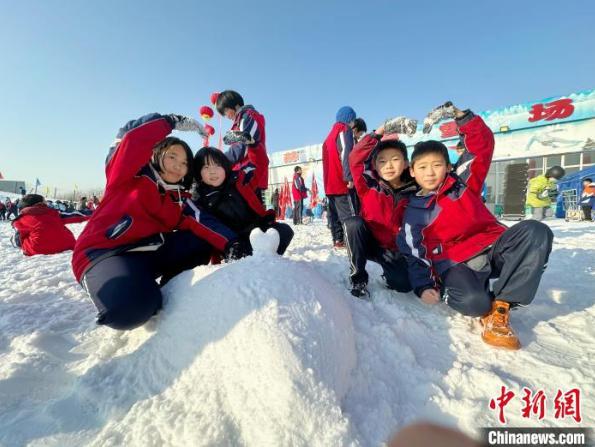 图为孩子们在活动现场学习体验双板滑雪项目。 刘艳飞 摄