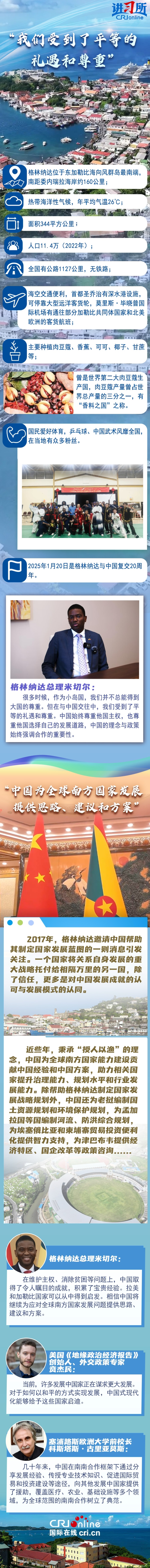 今年是格林纳达与中国复交20周年。20年来,中格关系稳定发展,双方相互尊重、平等相待,政治互信不断巩固,各领域务实合作成果丰硕……树立了大小国家平等相待、守望相助、互利共赢的典范。
