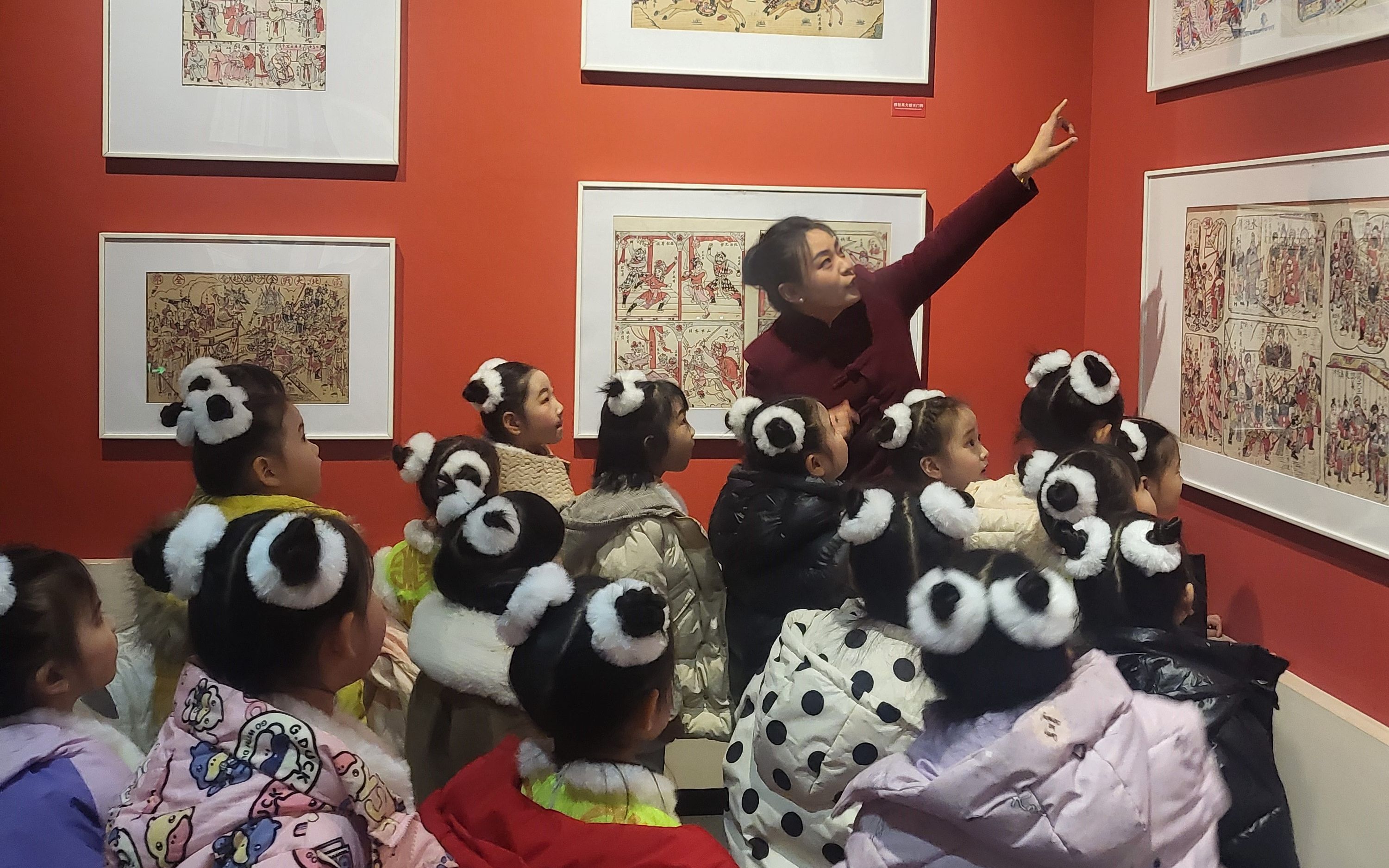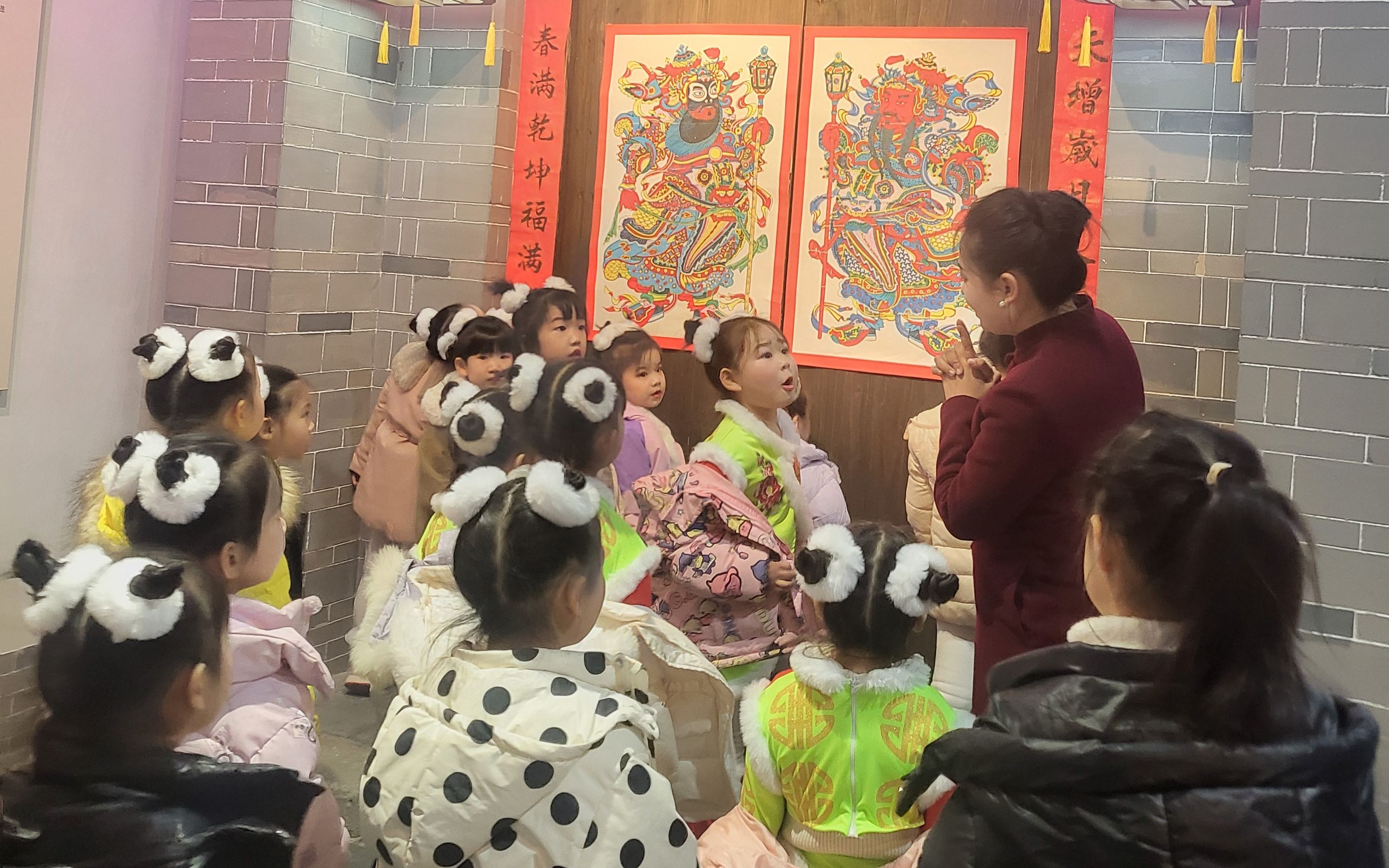 当天,来自武强县直幼儿园的孩子们走进武强年画博物馆,在指导老师和讲解员的带领下,他们好奇且兴奋地走进一个个展厅,欣赏着一幅幅精美的戏出年画作品。这些色彩斑斓、形象生动的年画,将戏曲中的经典场景和人物形象栩栩如生地展现出来,仿佛带领孩子们走进了一个个戏曲的奇妙世界。