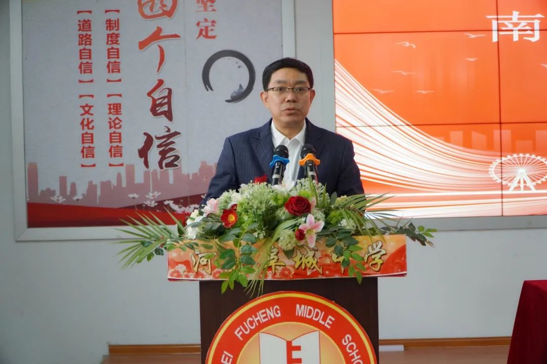 阜城县委副书记张越对来访的南开大学贵客表示欢迎,就阜中办学理念、办学特色、育人成果等概况作了简要介绍,希望“优秀生源基地”授牌能为两校开展深入交流合作创造有利条件,共同培养更多优秀人才。