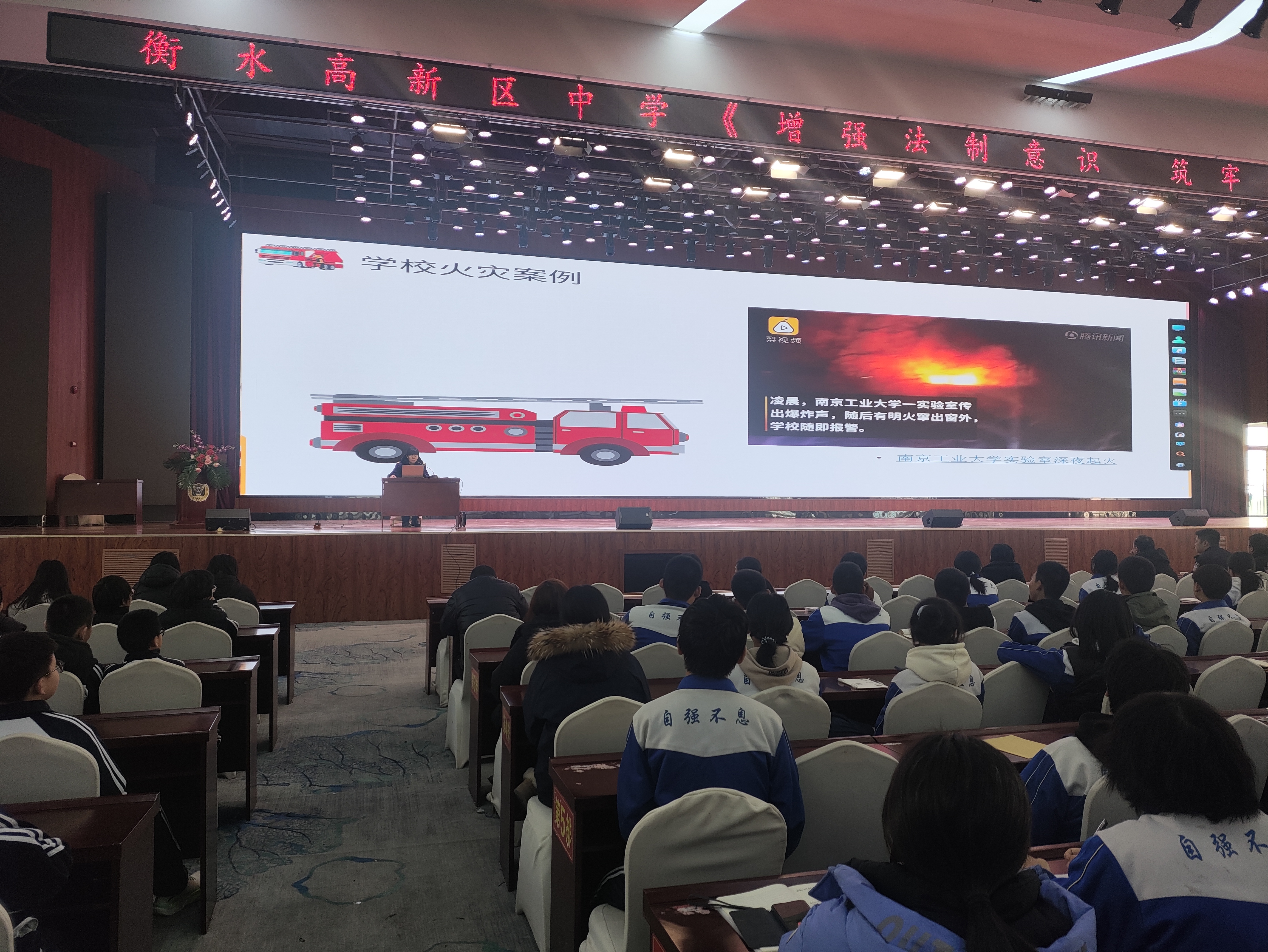 1月15日,衡水高新区中学开展“增强法治意识 筑牢消防防线”专题培训,2800余名师生共同参加培训,筑牢校园安全坚固防线。