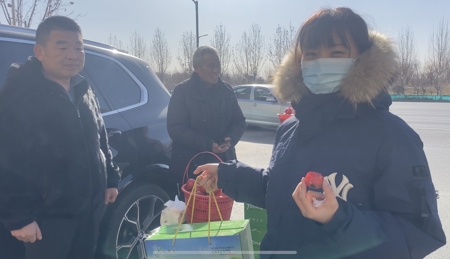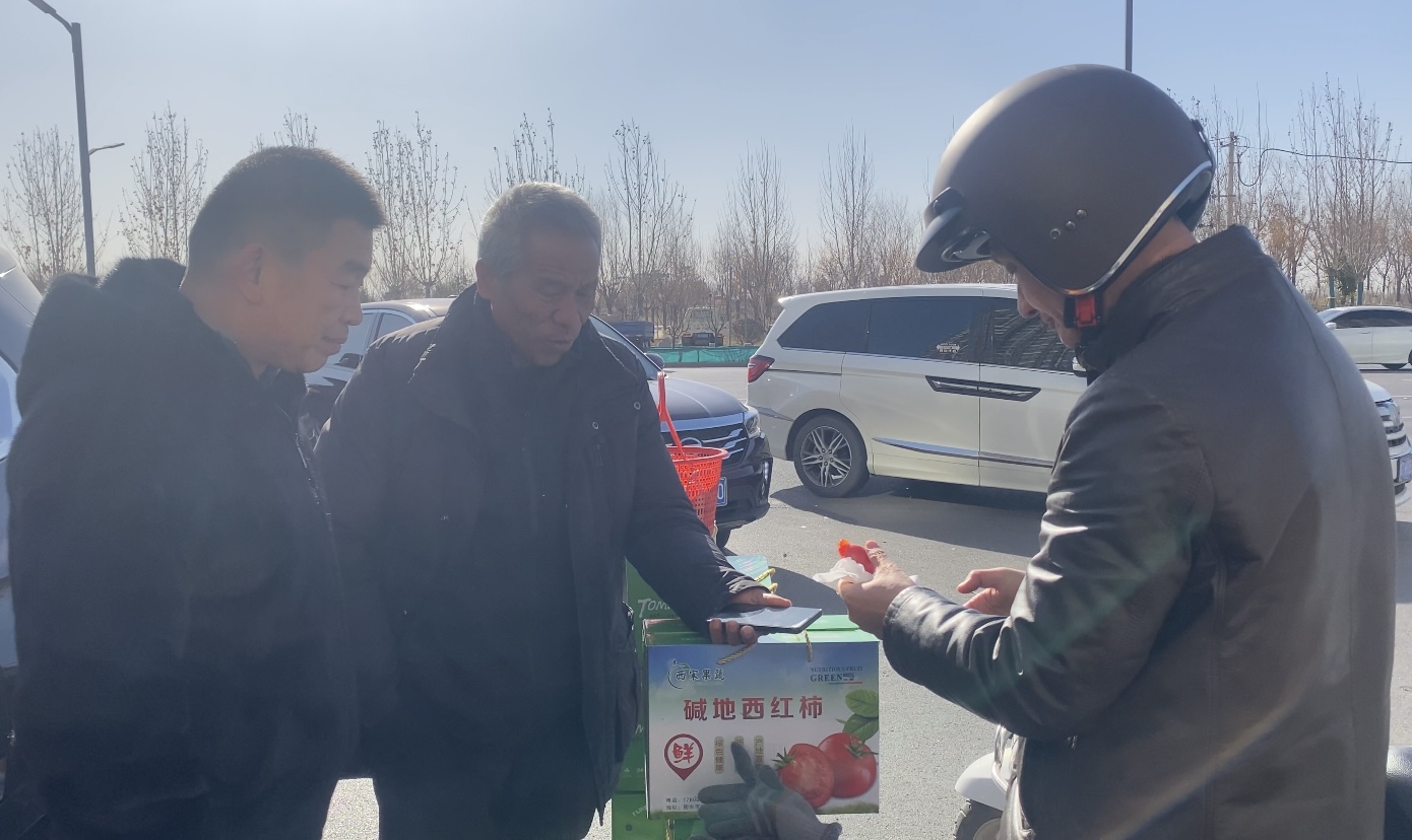 “嘀”的一声,扫码、付款,第一笔货款落袋为安,小摊儿边围着的人也越来越多。“这西红柿真好吃,快过年了,给孩子备上一箱。”“你们明天还来吗?要是再想买怎么联系呢?”“这种口感的西红柿在超市得卖到10块钱一斤,这儿还是挺划算的。”尝到西红柿好吃,顾客们纷纷询问。宋勃耐心地一一解答、介绍,不一会儿就卖出去十几箱。