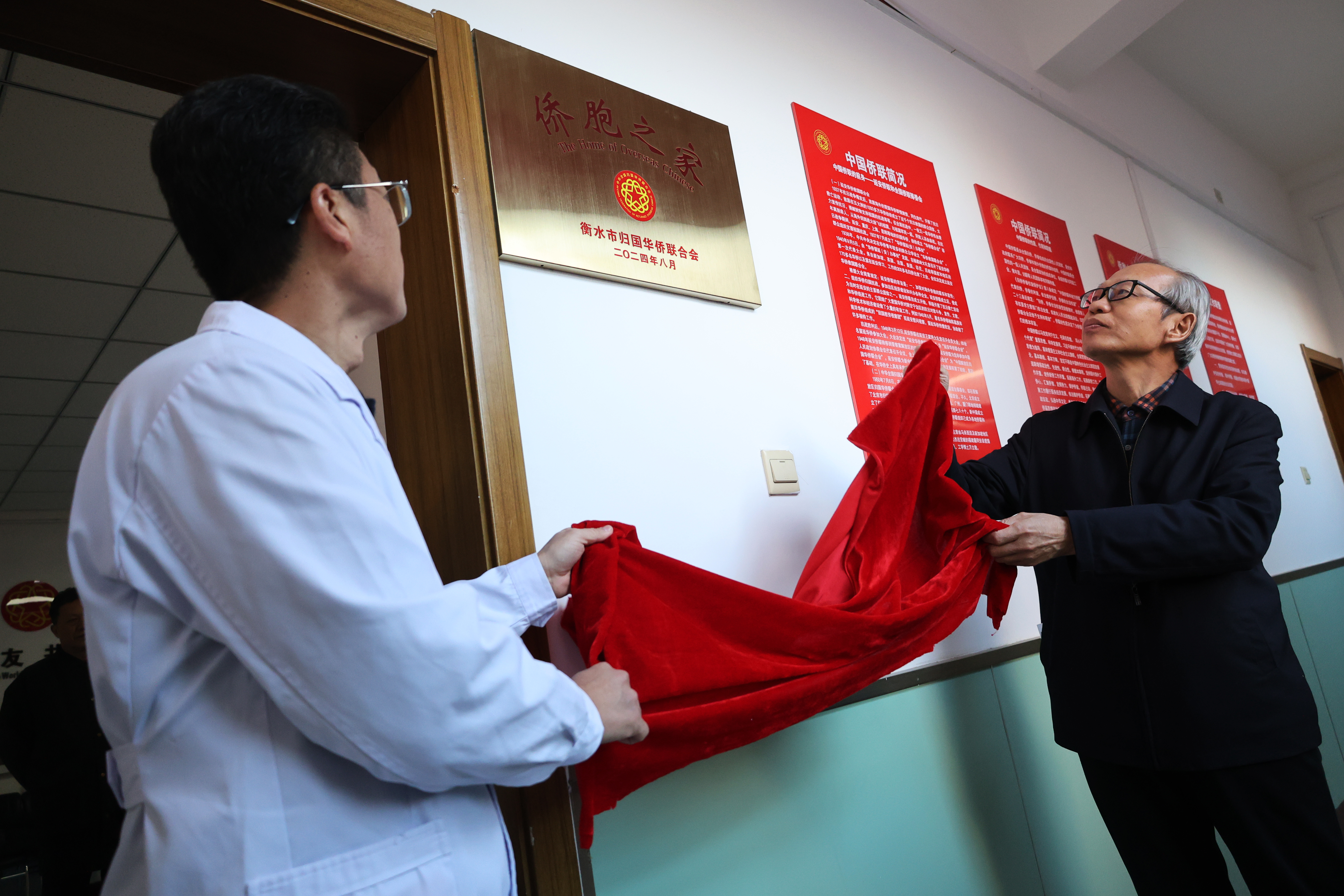 当日,现场气氛热烈而庄重。在众人的瞩目下,市第五人民医院书记韩非与市侨联主席、一级调研员董春晓一同缓缓揭开红绸,“侨胞之家”的牌匾在阳光下熠熠生辉,标志着衡水市五院在服务侨界群众的道路上迈出了坚实的一步。