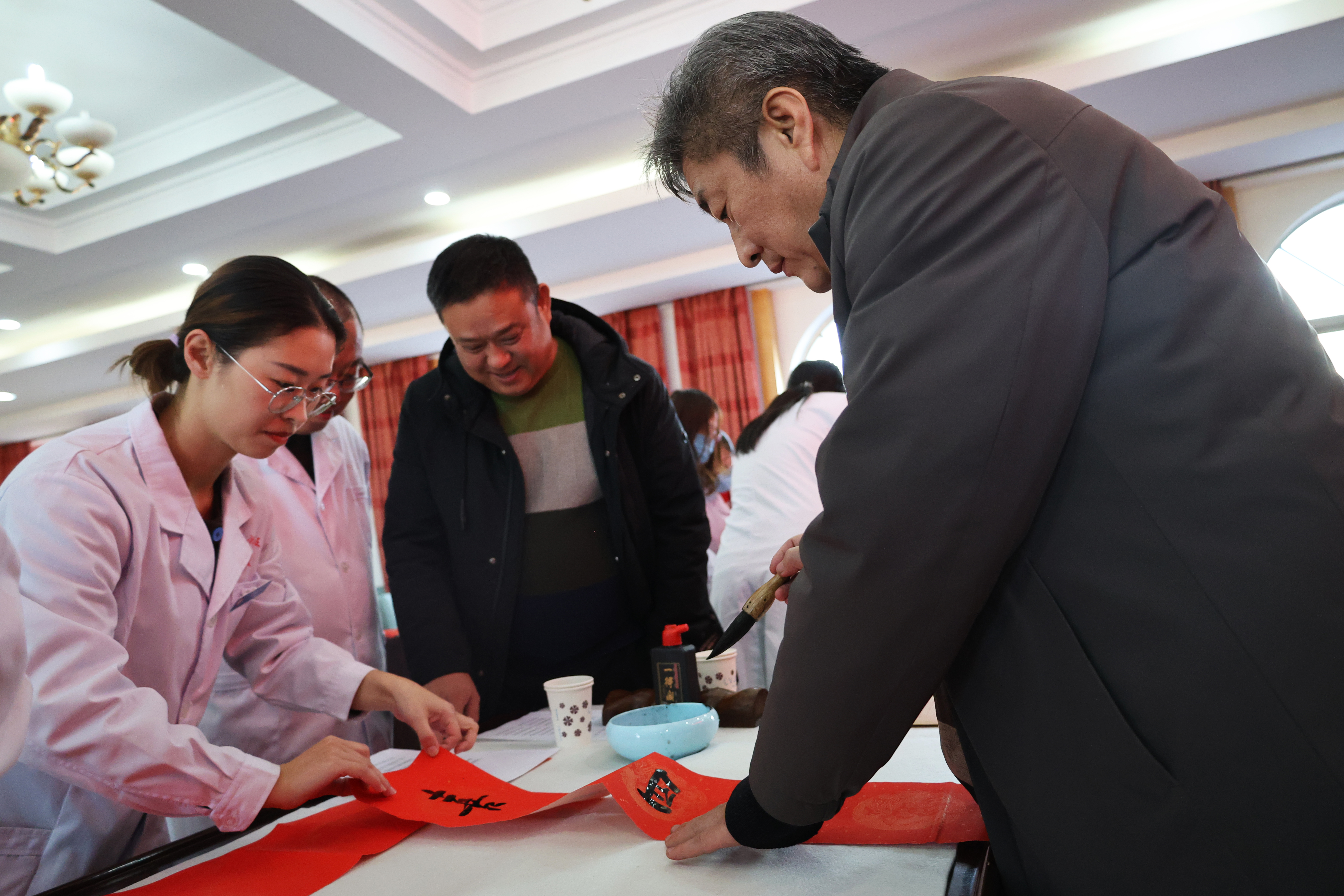 活动临进尾声,书法家们纷纷挥毫泼墨,为五院侨眷和职工书写春联、福字。一幅幅饱含祝福的作品在笔下诞生,浓浓的年味和真挚的情谊在空气中弥漫开来。大家用这种独特的方式,迎春送福,传递着对未来美好的期许。