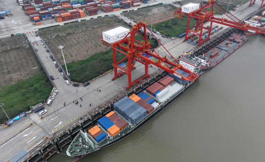 长江黄金水道链接海上丝绸之路。自2019年11月开通首条国际航线,到2024年底,武汉阳逻港共开通5条国际直达航线,年出入境船舶首次突破100艘。