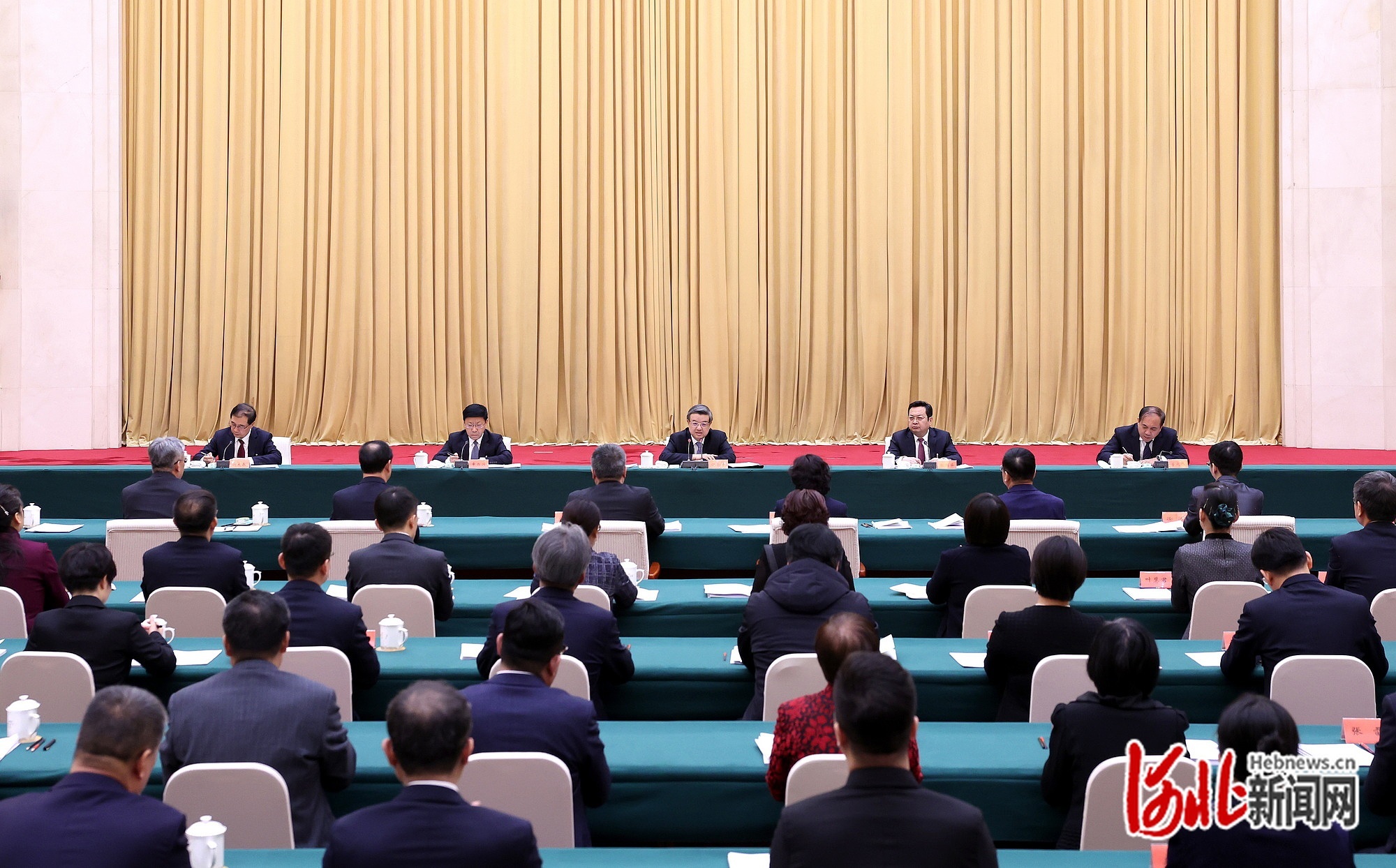 1月14日,省委书记、省人大常委会主任倪岳峰参加省政协十三届三次会议教育组、科学技术组联组讨论。 河北日报记者赵海江摄
