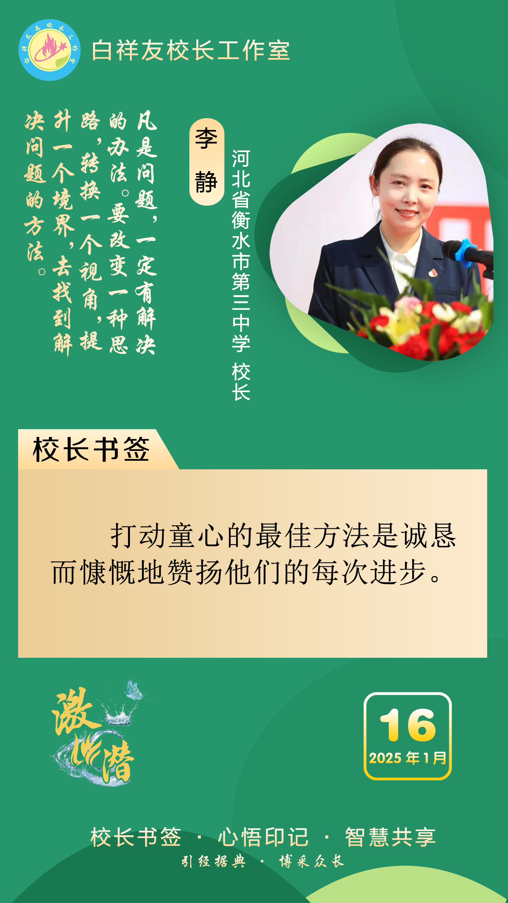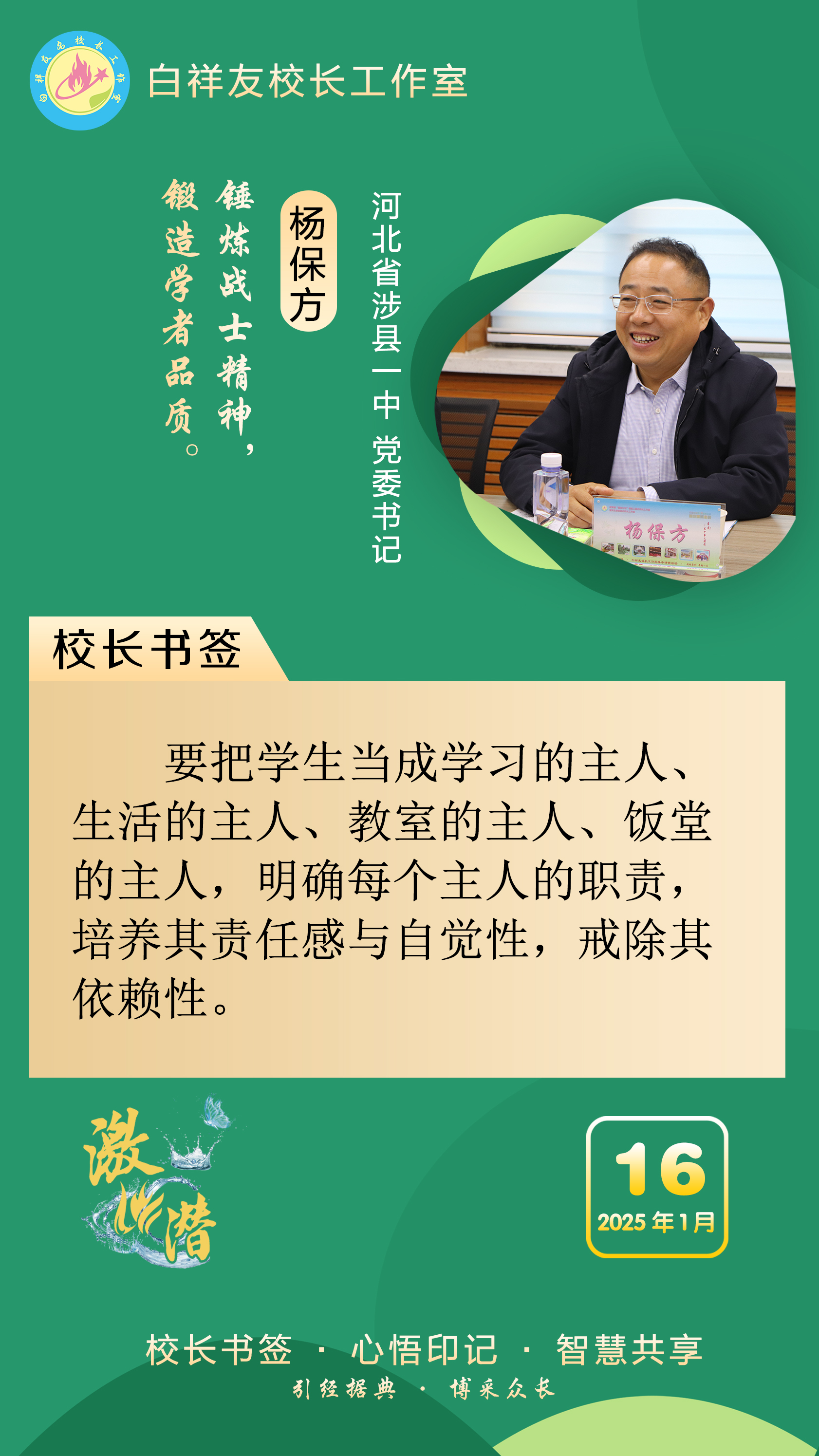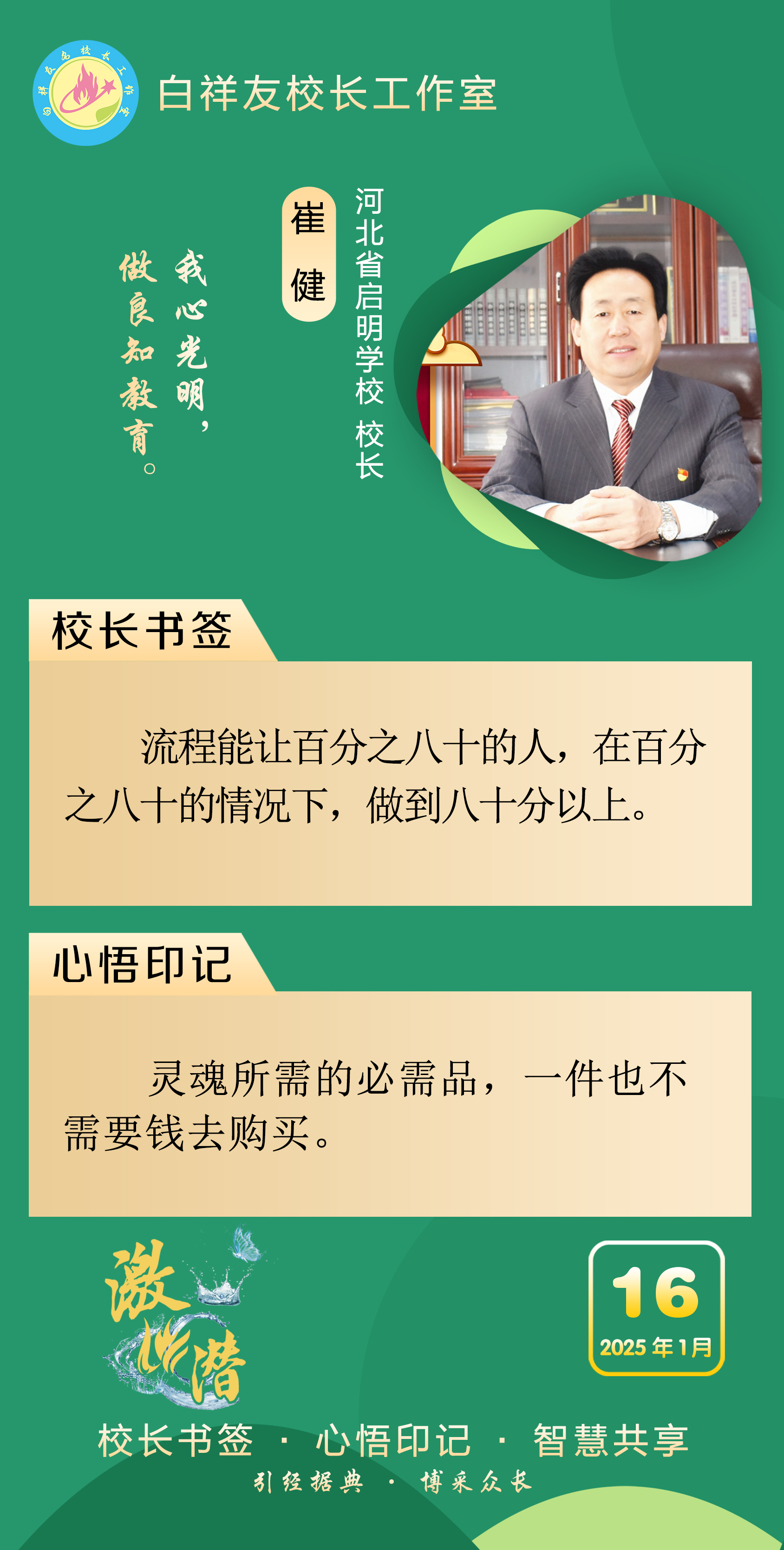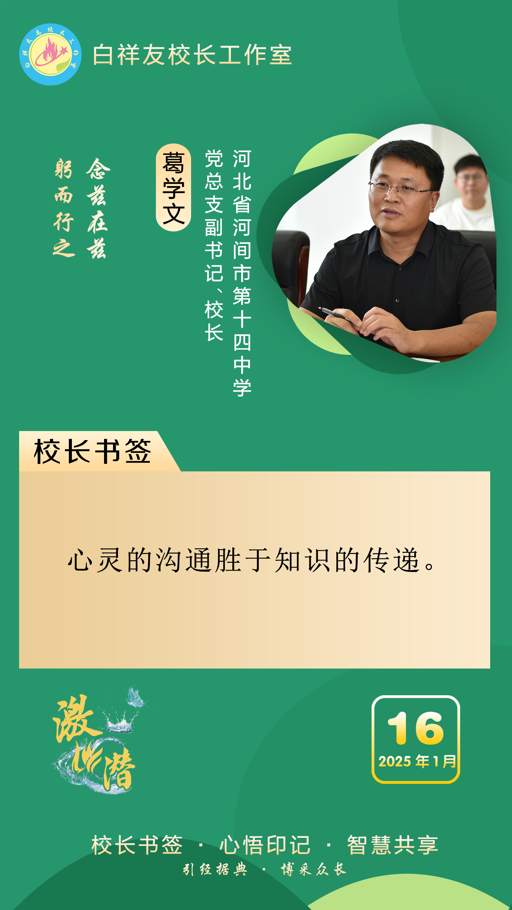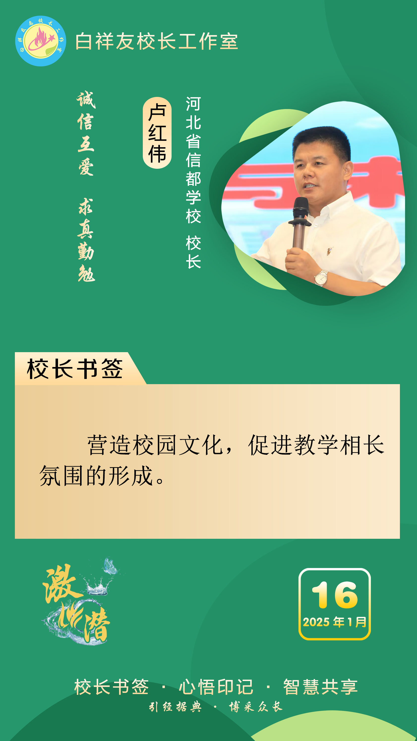 “白祥友校长工作室”成立于2019年4月,是教育部“国培计划”中小学名校长领航工程、河北省首批名校长工作室,目前省内外成员校56个。工作室坚持“资源共享、智慧共融、互助共赢”理念,已成为思想碰撞的交流场,资源共享的品牌站,成果展示的辐射源。