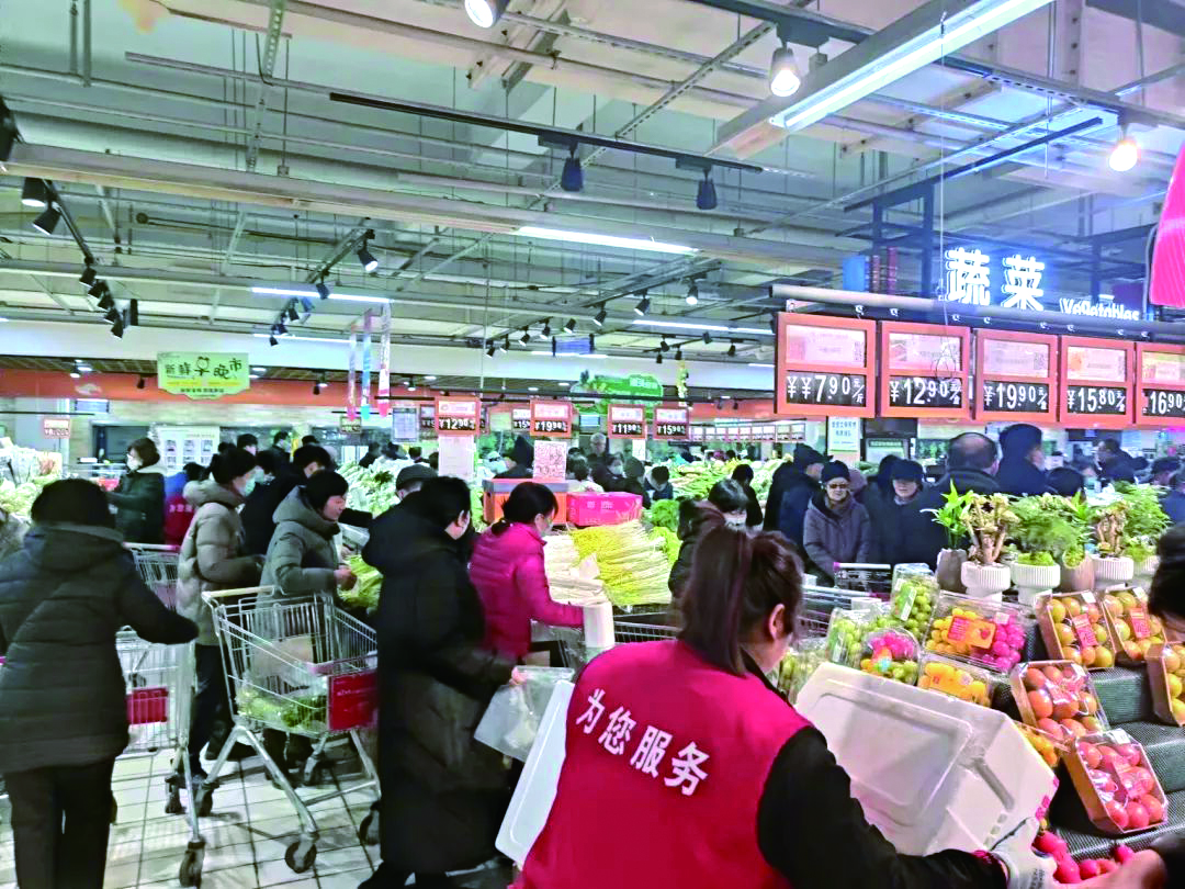 临近春节,市内各大商超纷纷开启“年货大街”模式,各种年货、年菜陆续上市,除了鸡鸭鱼肉外,有机蔬菜、各色坚果、中外水果等占据了货架的“半壁江山”,吸引顾客驻足挑选。