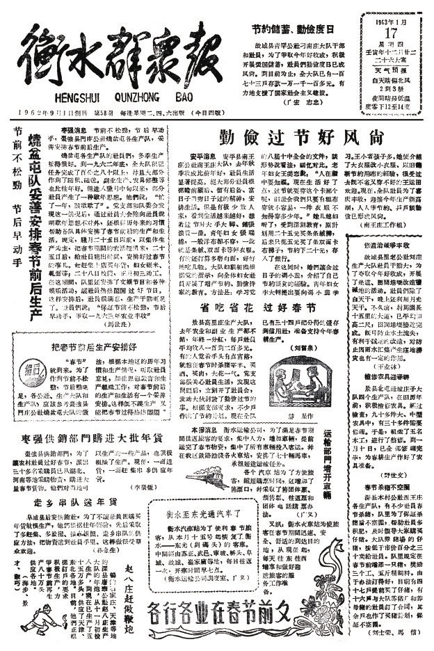 1963年1月17日《衡水群众报》
