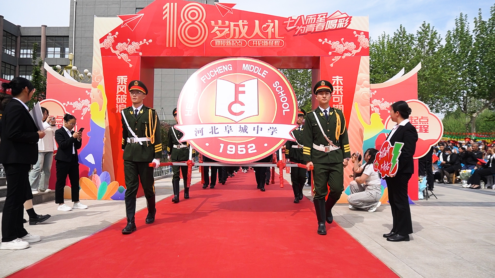 学校每年都会为高二学子举办一场以奋斗、激情、感恩为主题的成人礼,为学生“加冠”并佩戴成人徽章,引导学生常怀感恩之心,帮助学生树立拼搏向上的决心。