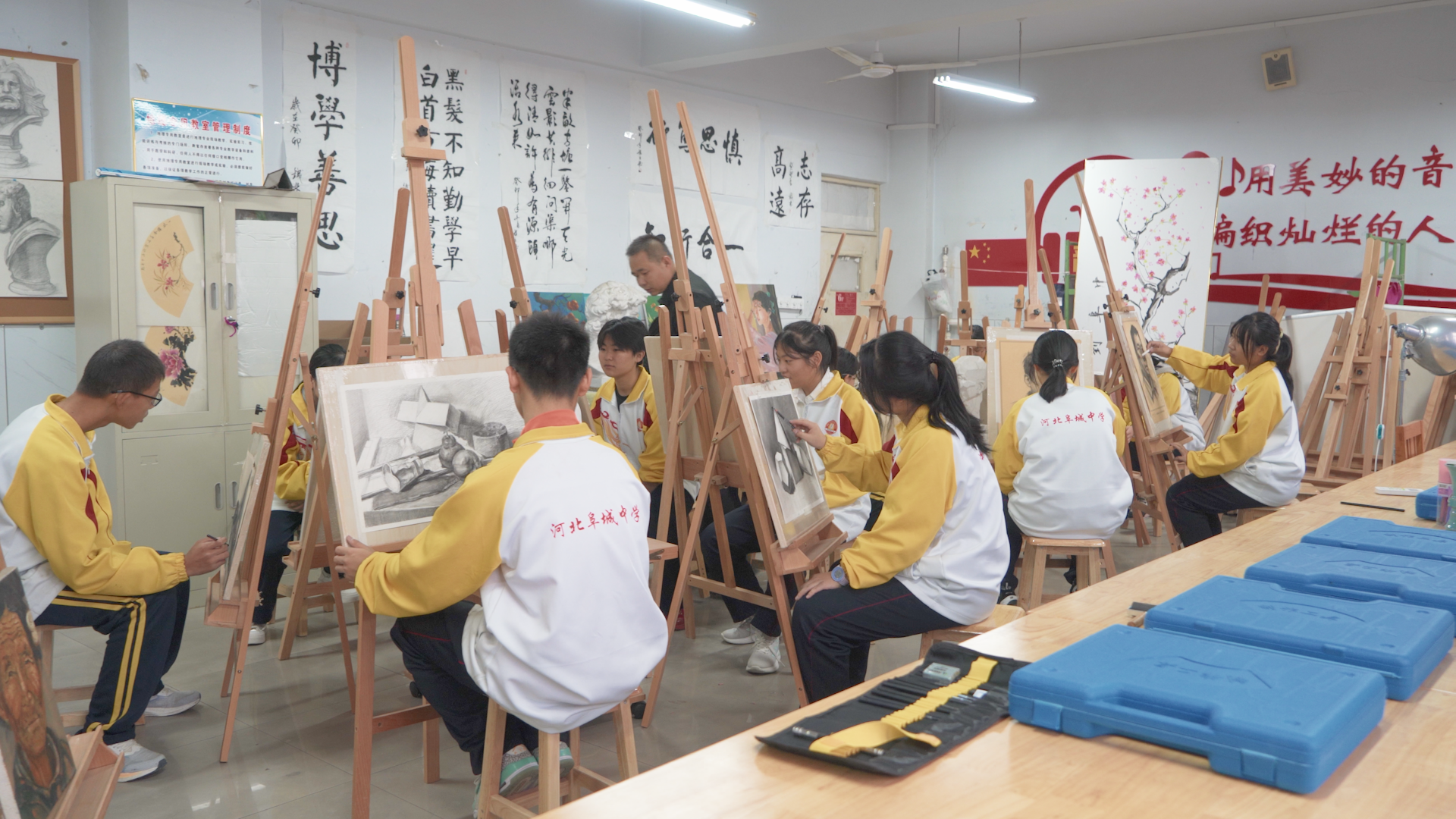 阜中校园里,惠风和畅,书卷芬芳。教室里,教师循循善诱、侃侃而谈;学生凝神谛听、奋笔疾书,或书声琅琅,或埋头钻研;运动场上,龙腾虎跃、活力盎然;音乐教室里,琴声悠扬、歌声婉转……