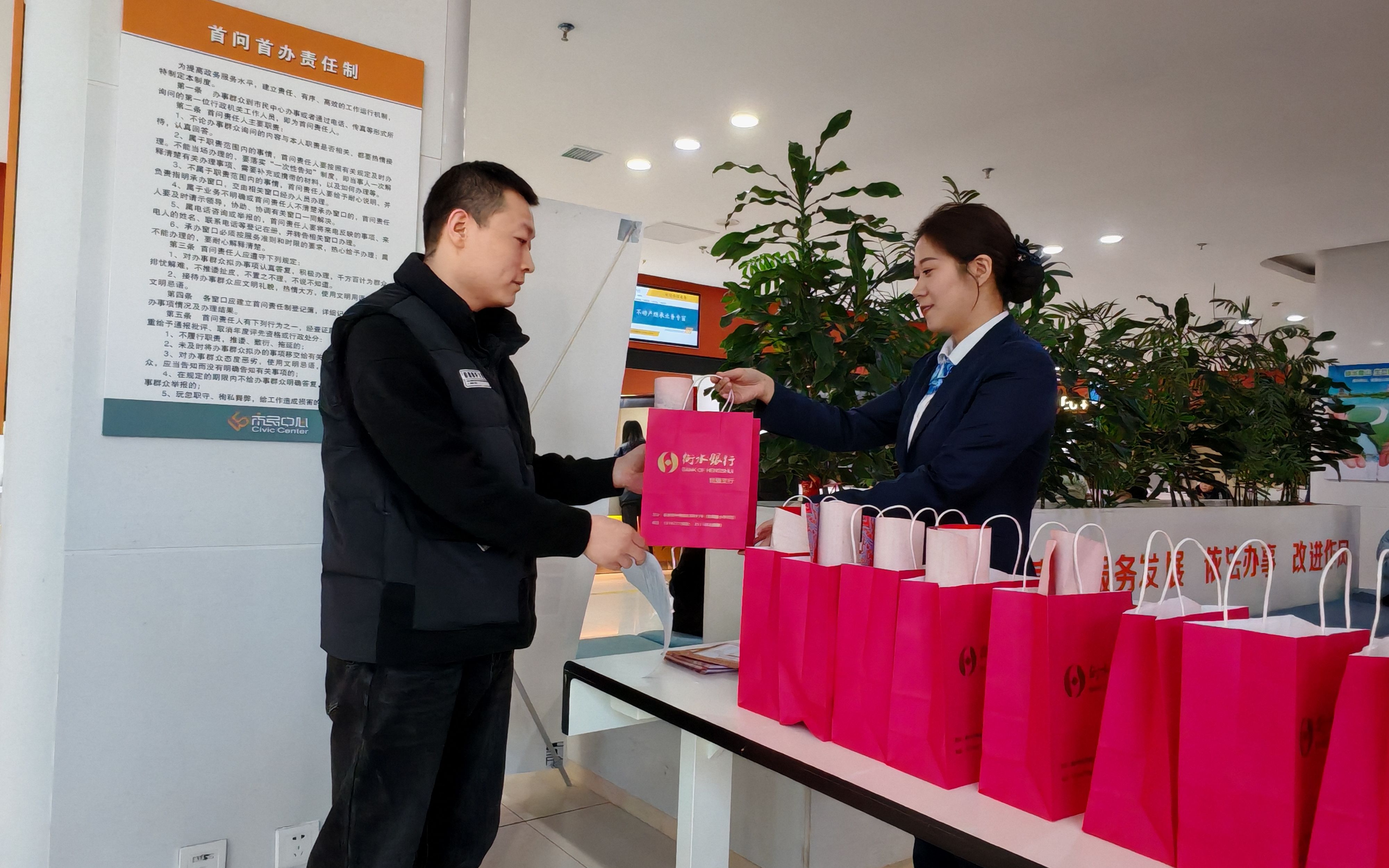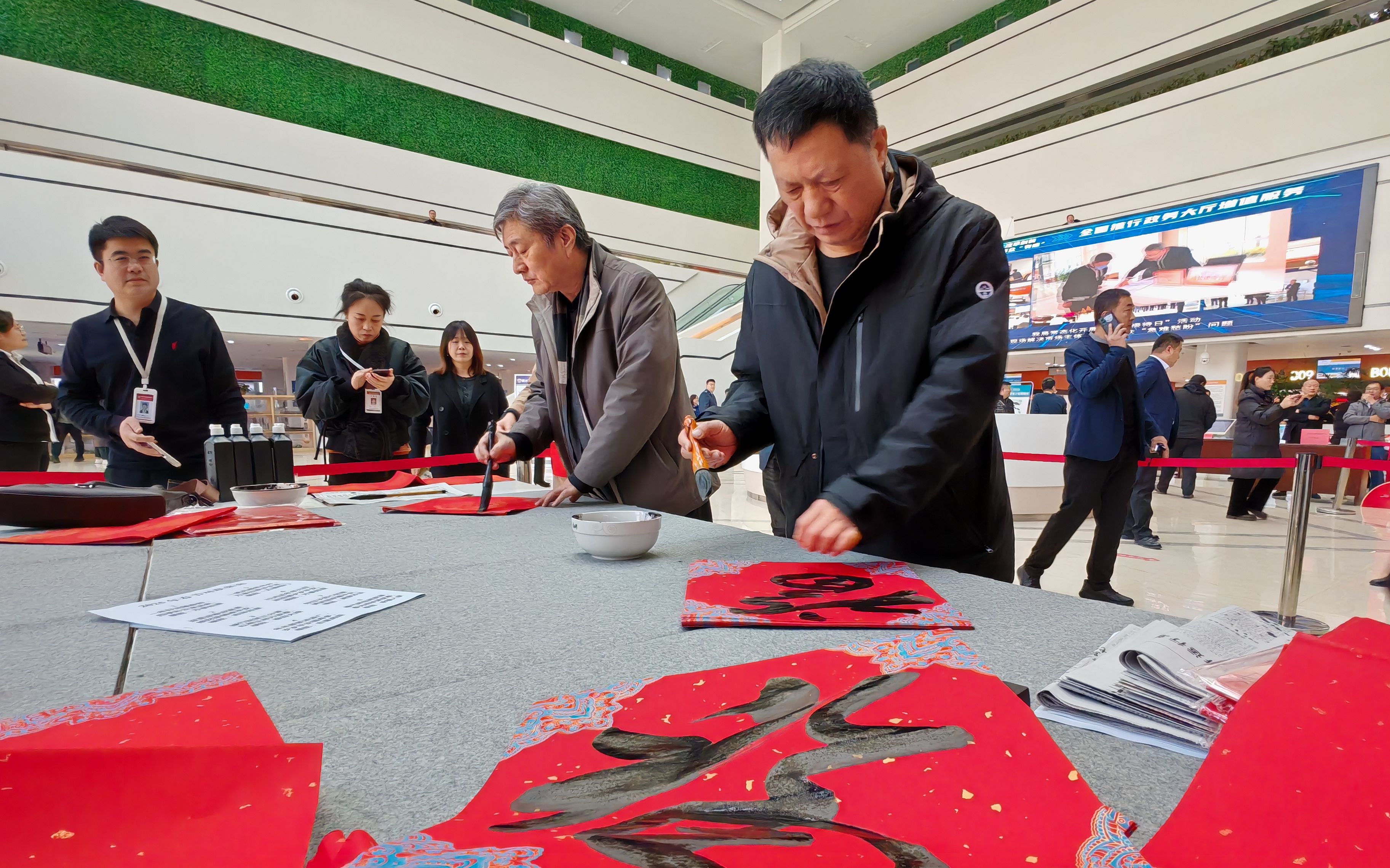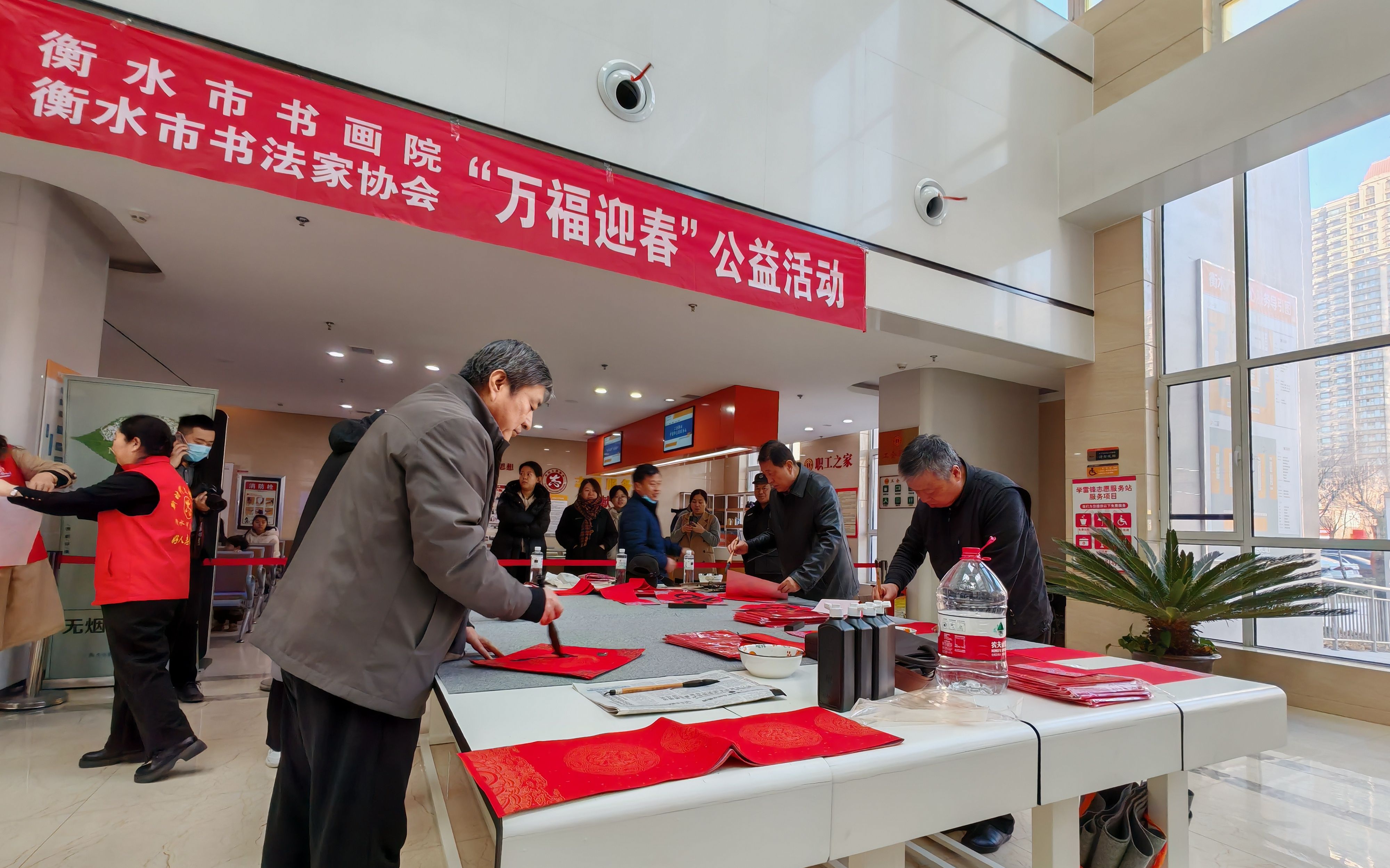 辞旧迎新春,墨香添福祥。在新春佳节即将来临之际,为弘扬中华民族优秀传统文化,营造欢乐祥和的节日氛围,1 月 16 日上午,由市数据和政务服务局主办,衡水银行自强支行协办的 “翰墨迎新福临门 真心服务‘政’能量” 活动在市民中心一楼大厅盛大举办,为广大群众送上了新春佳节最美好的祝福。