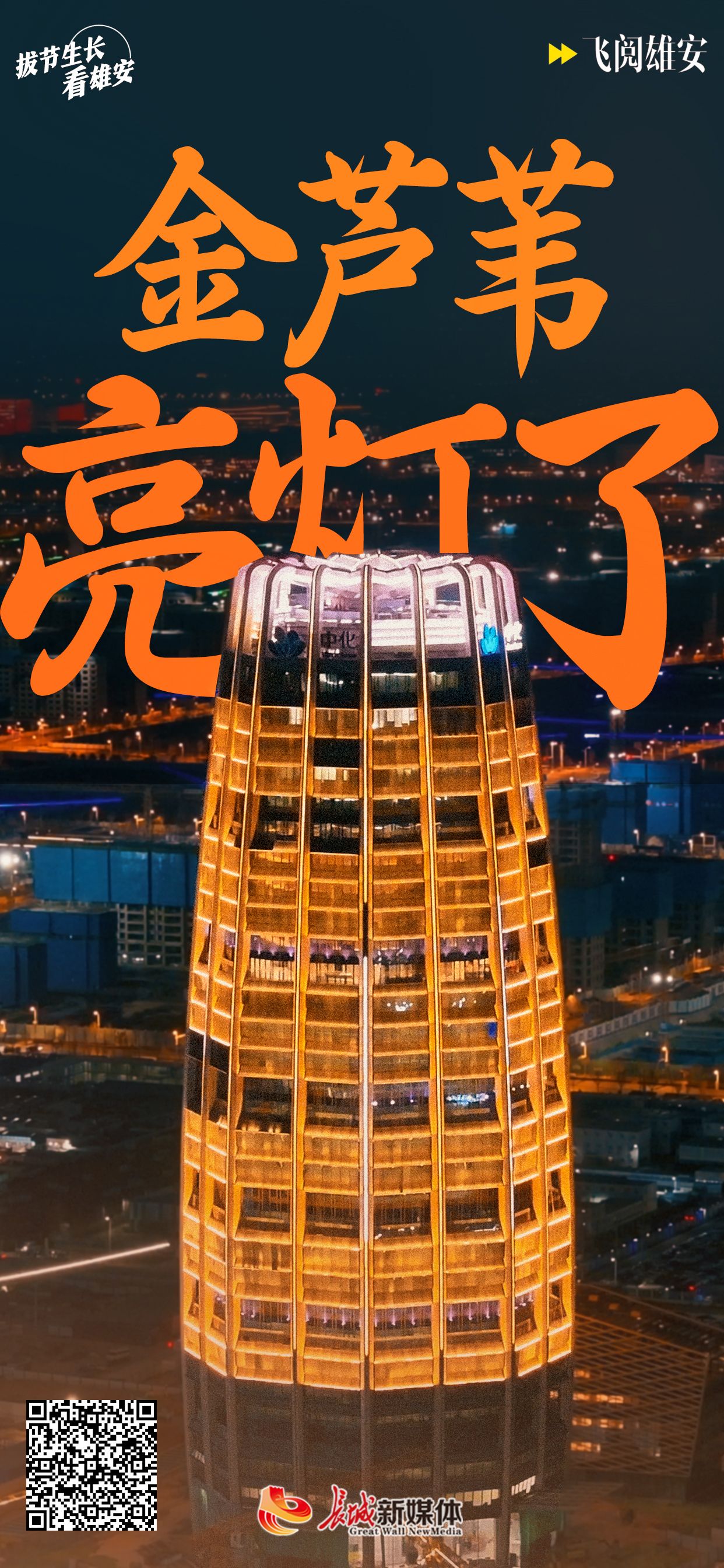 牡丹真国色,花开动雄安。岁末年初,雄安第一高楼,中国中化总部大厦亮灯了。