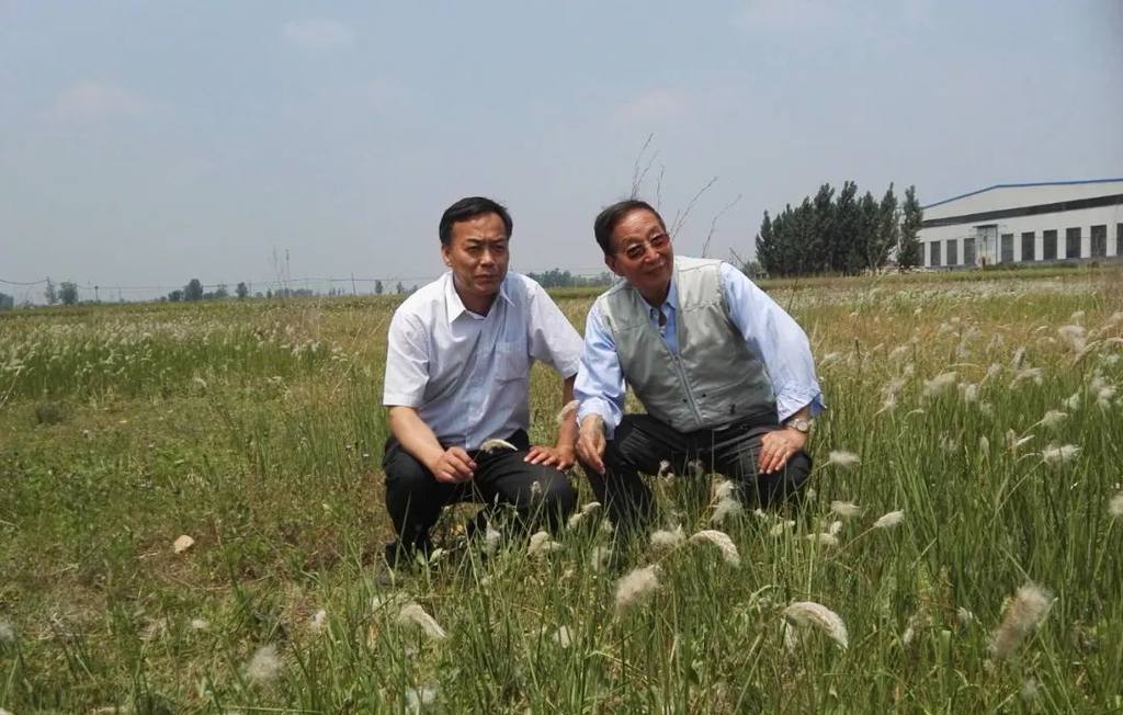 2016年5月,李振声院士(右)在中国科学院南皮生态农业试验站调研期间,与刘小京(左)合影。(资料片)
