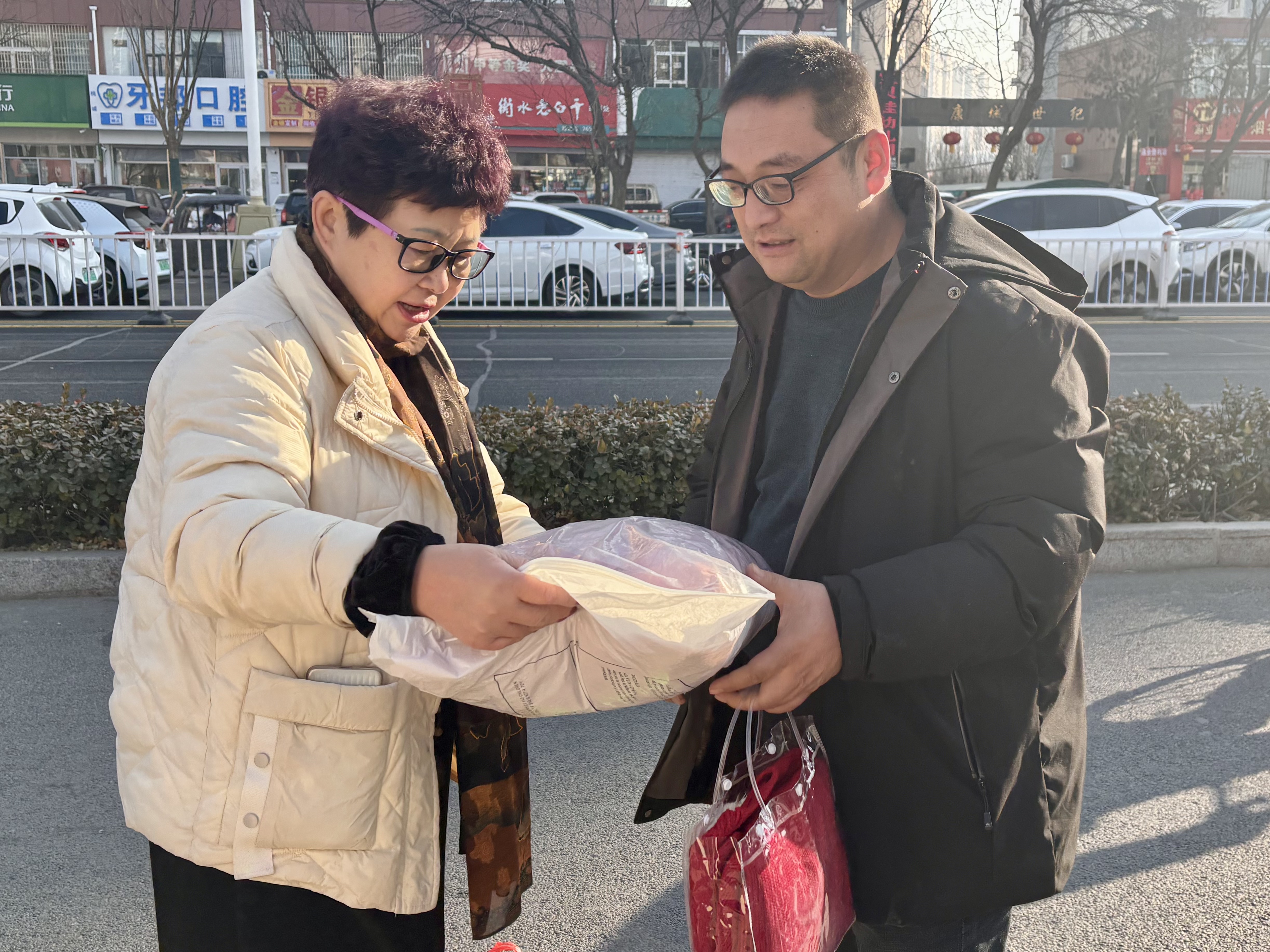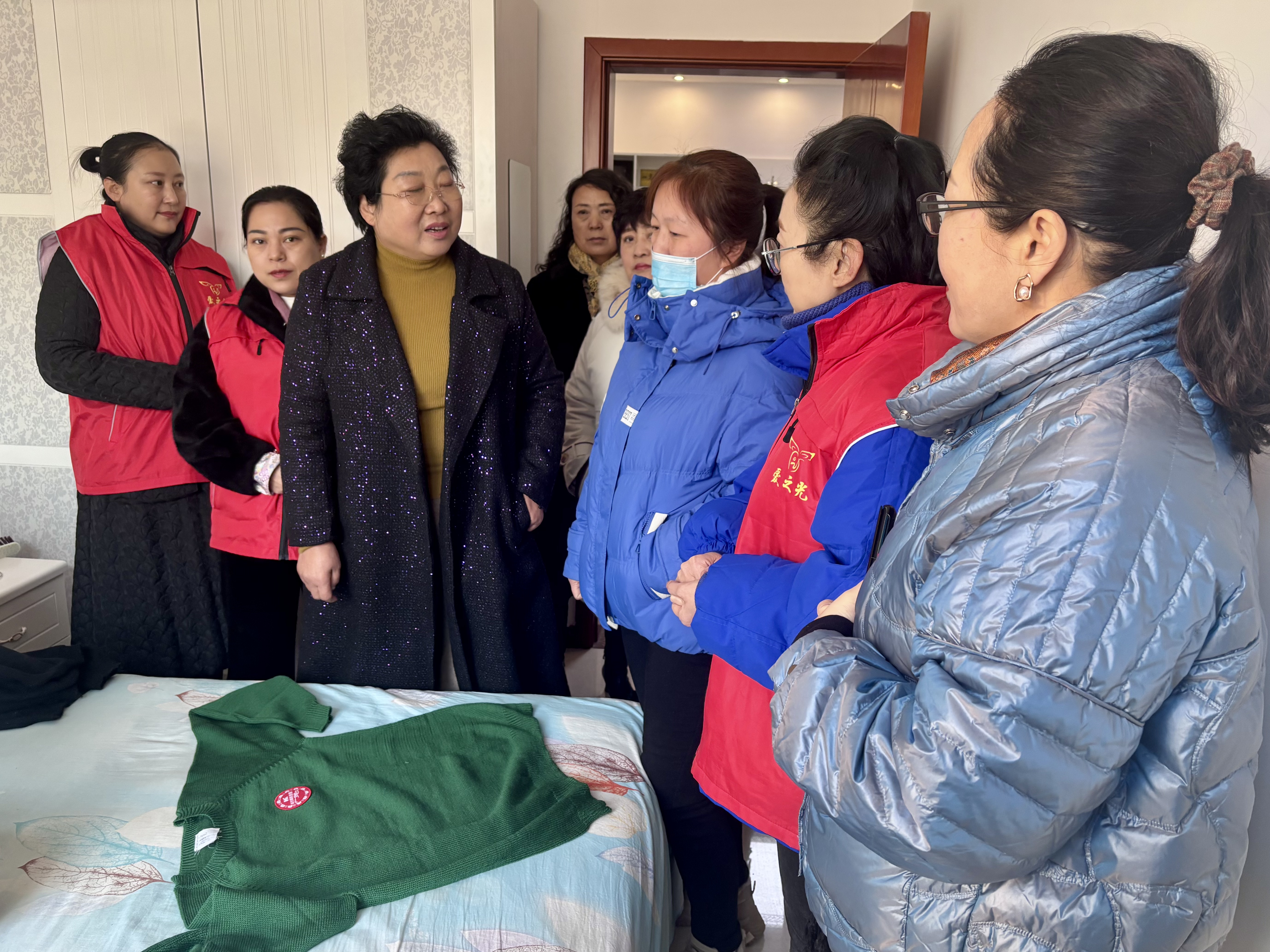“生活中有什么困难?”“最近身体怎么样?”在走访慰问中,志愿者与特殊人群及家人进行了亲切交流,详细了解了他们近期的生活细节、身体情况和实际需求,鼓励他们用积极向上的心态面对生活。志愿者们还为慰问对象送来了大米、水果、面条、棉服等满载关怀的慰问品。其中,纯色针织毛衣显得尤为特别,原来这是桃城区妇联为每个孩子量身定制的,一针一线都带着工作人员指尖的温度、凝聚着满满的呵护与希望,为他们抵御冬日的寒风。