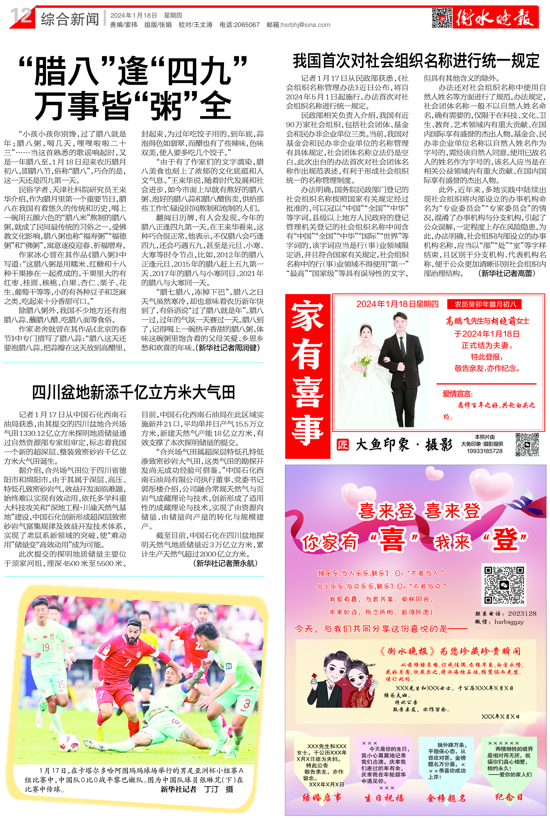 2024年1月18日《衡水晚报》