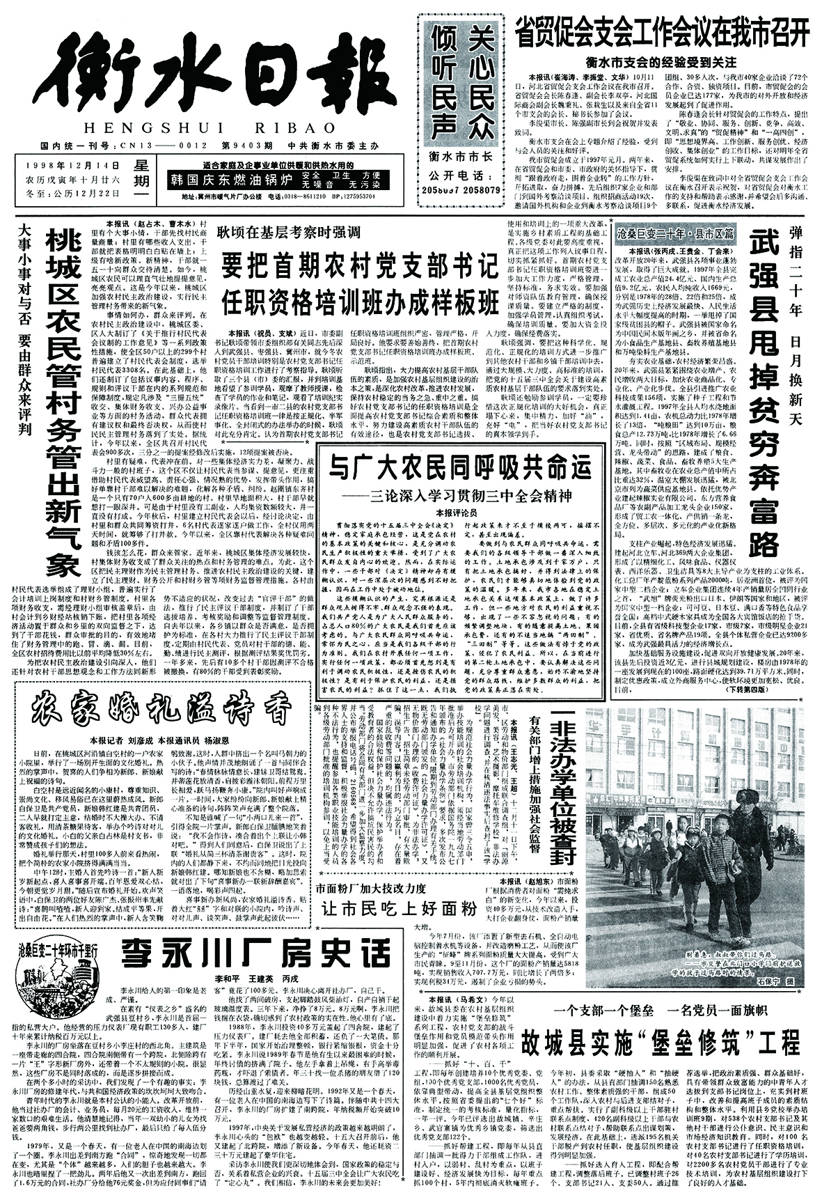 1998年12月14日《衡水日报