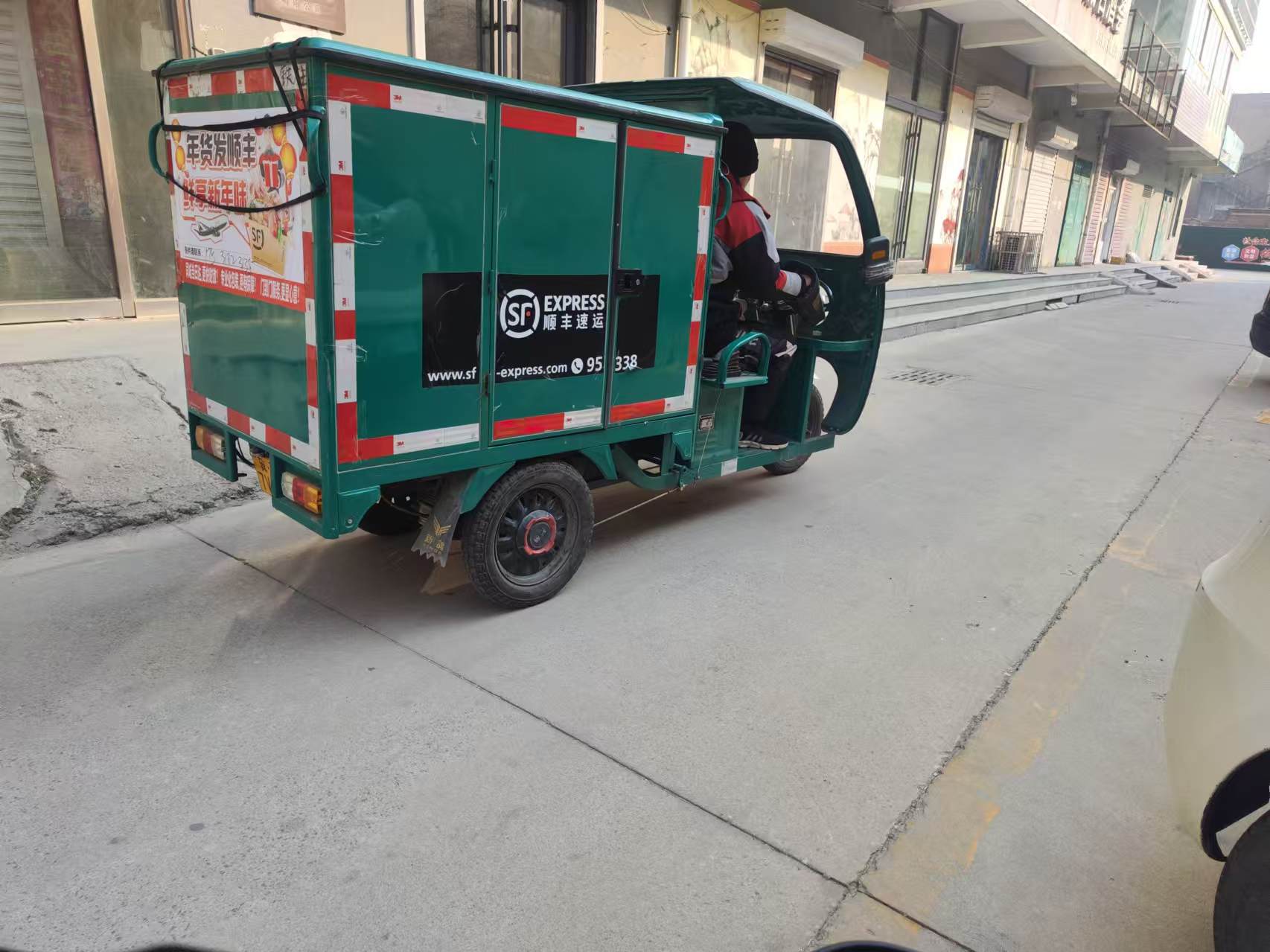 8点30分,快递员们顶着刺骨的寒风出发了,近三十辆“小绿车”各奔东西,开始了一天的工作。
