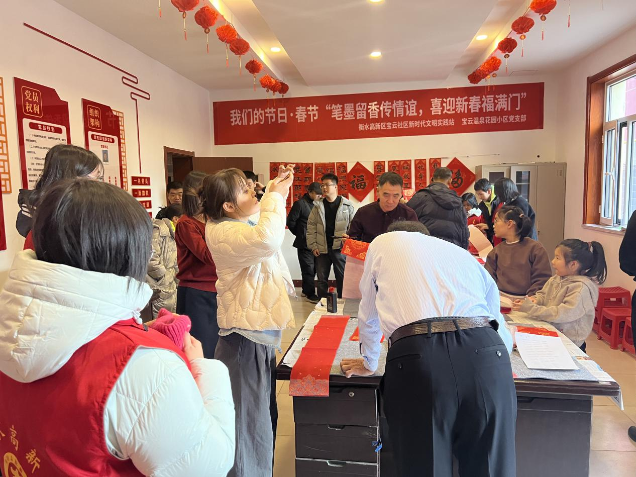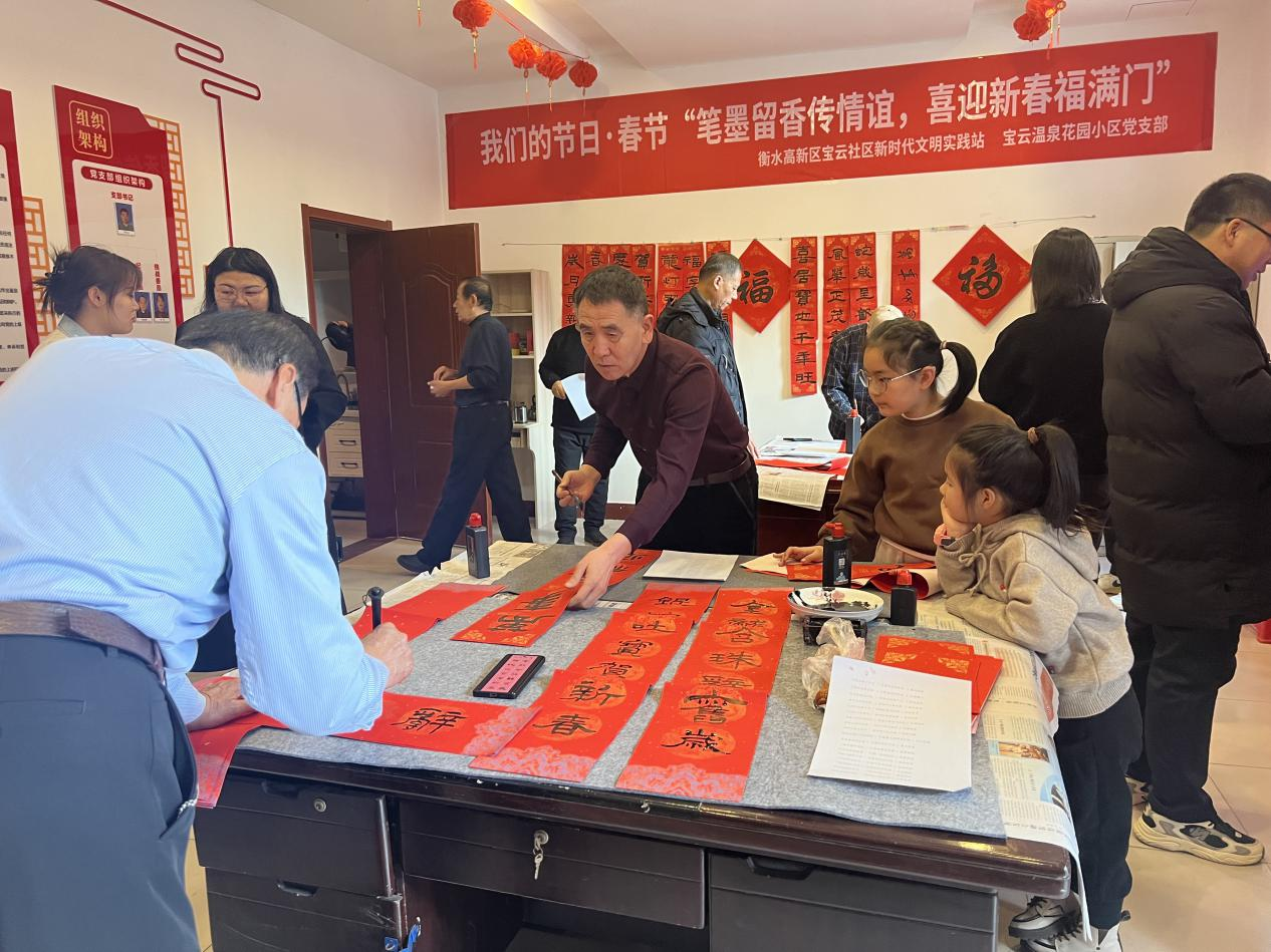 为丰富社区居民文化生活,增添节日的喜庆气氛,同时增强社区居民之间的交流与互动,近日,衡水高新区永兴街道管理服务中心宝云社区携手宝云温泉花园小区党支部开展了“笔墨留香传情谊,喜迎新春福满门”送福送春联活动。