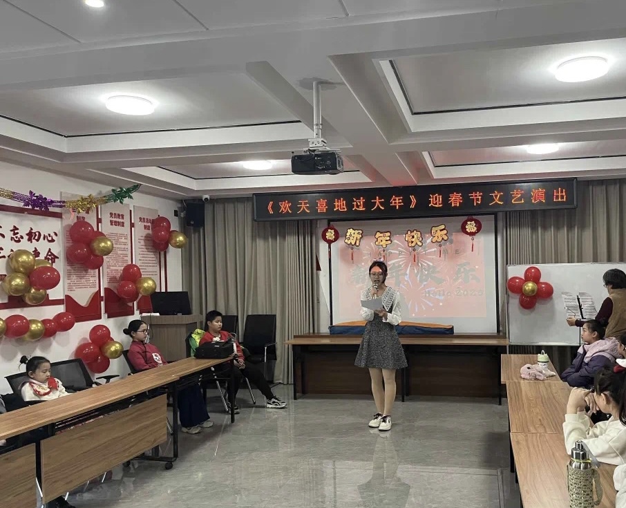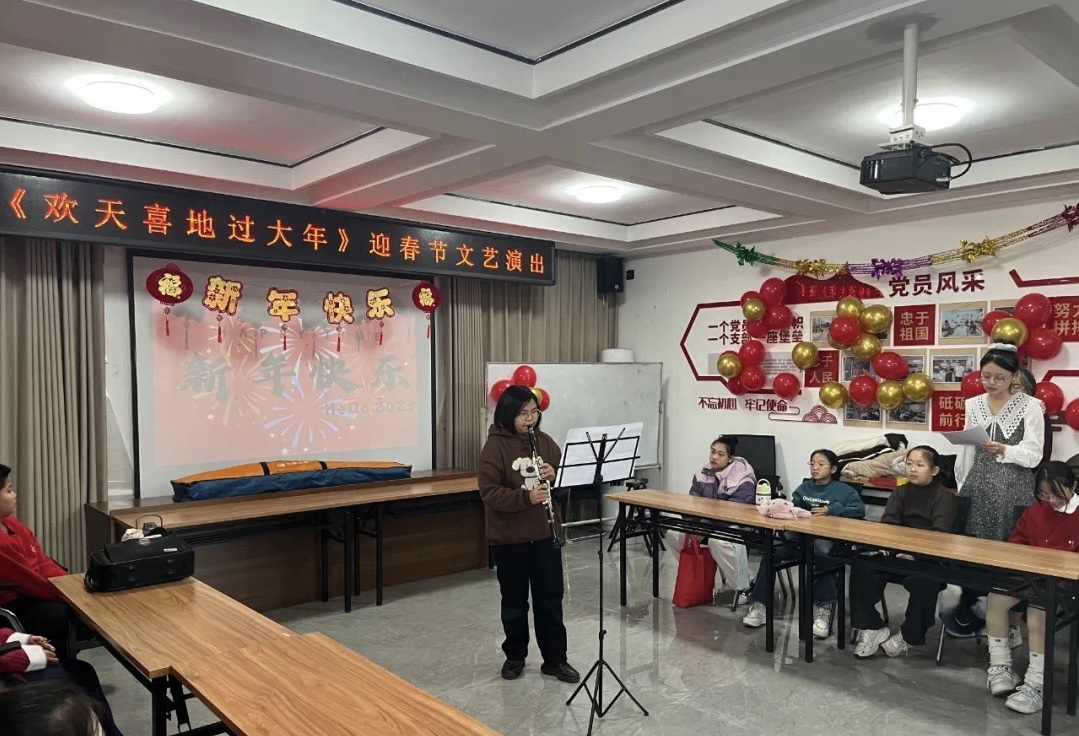 演出现场,节目丰富多元,精彩绝伦,为大家带来了一场视听盛宴。音乐类节目中,单簧管独奏《波尔卡》节奏明快,瞬间点燃现场气氛。古筝演奏《洞庭新歌》,以灵动音符展现出洞庭湖的秀丽风光与欢快生活。《藏风美少年》《梦广陵》《上春山》等舞蹈独具魅力,赢得观众阵阵掌声。武术表演虎虎生威,一招一式尽显中华武术的刚劲有力,除此之外,还有合唱、诗朗诵等节目,同样精彩喜庆。