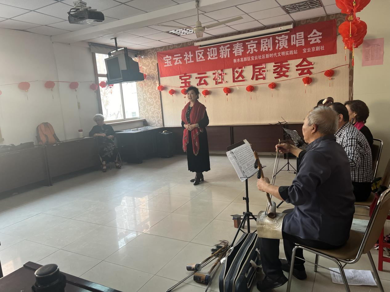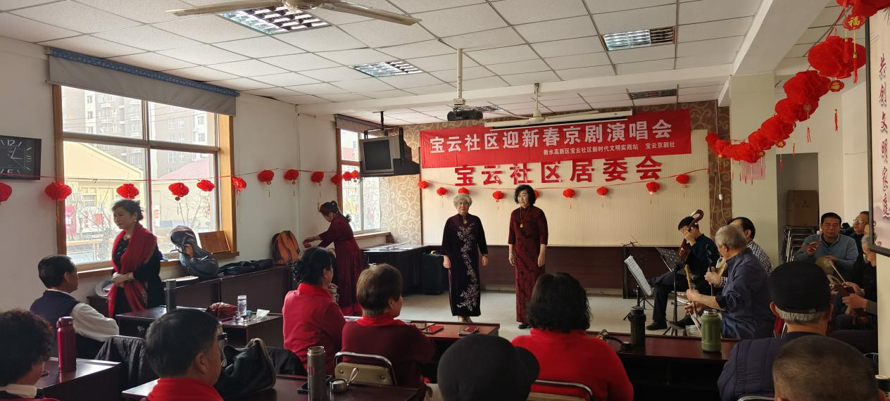 为了丰富社区居民的文化生活,迎接新春佳节的到来,近日,衡水高新区永兴街道管理服务中心宝云社区举办了一场精彩纷呈的京剧演唱会。本次演唱会由宝云社区居委会联合宝云京剧社共同策划和组织,吸引了众多社区居民前来观看,共同感受传统文化的魅力,营造了浓厚的节日氛围。