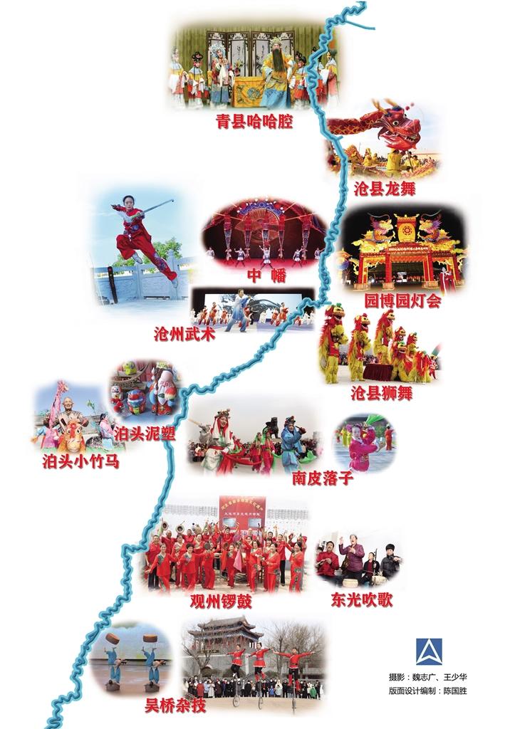 首个“非遗春节”怎么过?记者与我市平面设计爱好者陈国胜合作,联合摄影师王少华、魏志广,为读者绘制了一个运河边的“非遗春节”沧州游攻略图。走亲串友之余,您不妨“按图索骥”,赏非遗、游沧州,过个与众不同的“非遗年”。